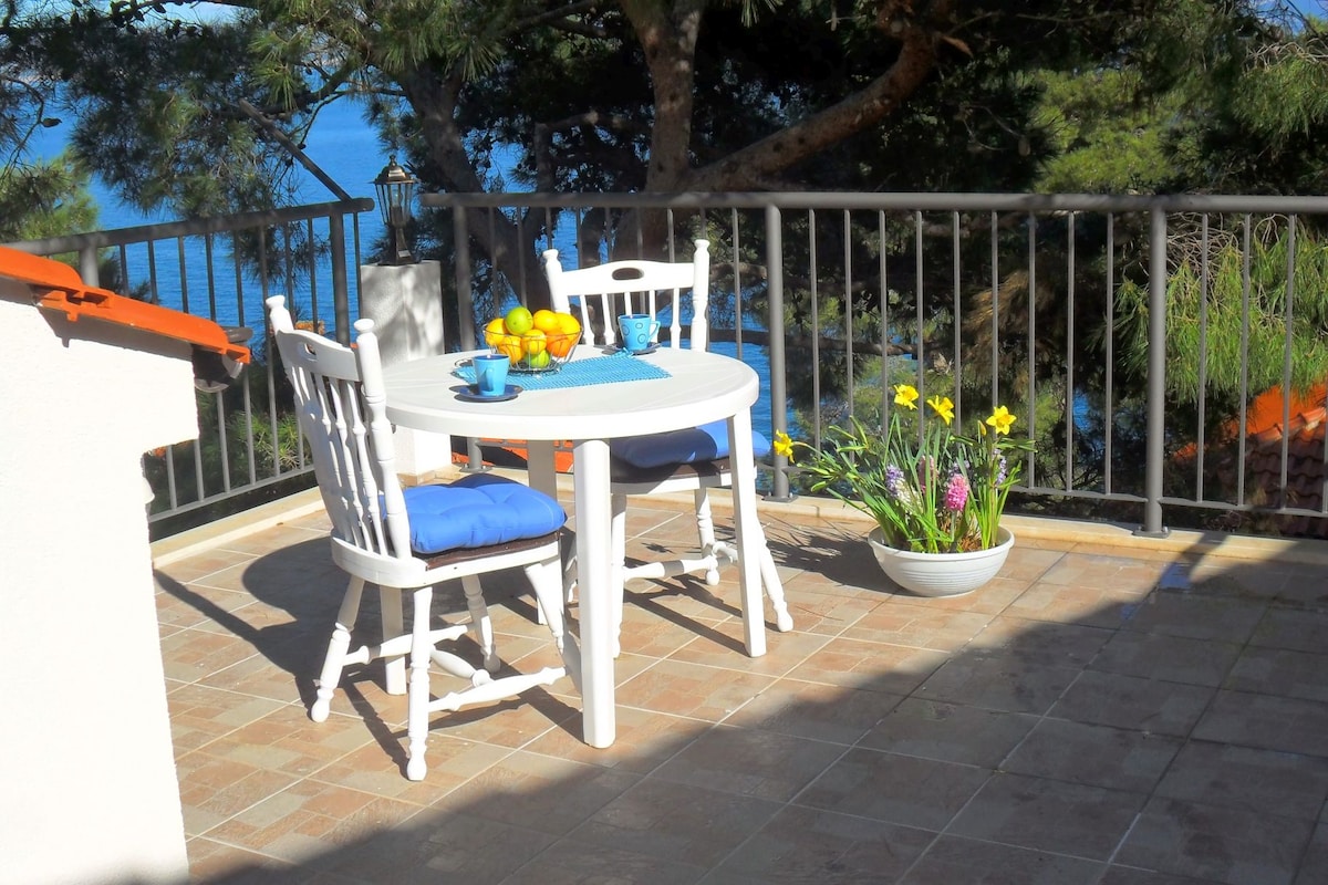 En av tre lägenheter att hyra av värdparet Bosse & Vera. Med dem kan man prata Svenska, Kroatiska eller Engelska. Det är en promenad på ca. 250 meter ner till det klarblå Adriatiska havet. Där kan man välja mellan att bada från klippor eller en vik med stenstrand. Vill man promenera in till den mysiga byn Stomorska så är det ca. 1 km. I byn finns det mataffärer och restauranger. Vill du se de andra lägenheterna Bosse & Vera hyr ut, sök på "Apartment Douglas-A1" & "Apartment Bosse & Vera-A3"