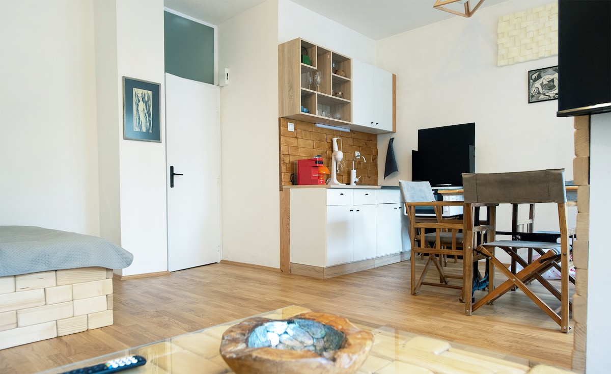 Welcome to your perfect home away from home! This charming one-bedroom apartment offers a cozy retreat with all the comforts you need for a relaxing stay. Nestled in one of the oldest neighborhood in Skopje, the space features a spacious living and bedroom area with modern amenities, and a fully equipped kitchen. Whether you’re here for business or leisure, enjoy a peaceful, stylish setting in just 10 minutes walk to the Old Bazaar and 5 minutes walk to the biggest mall-East Gate!