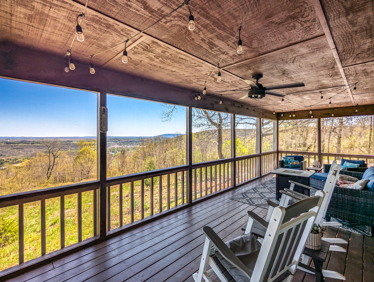 Kick back and relax in this newly built, calm, stylish cabin centered on a ridge of the beautiful Ozark Mountains. Nestled in a quiet, peaceful neighborhood with delightful landscape and wildlife viewing. The views from the back porch are breathtaking. Located just 7 miles from the mystic Blanchard Springs Caverns and only 5 miles from the square in Mountain View, AR.