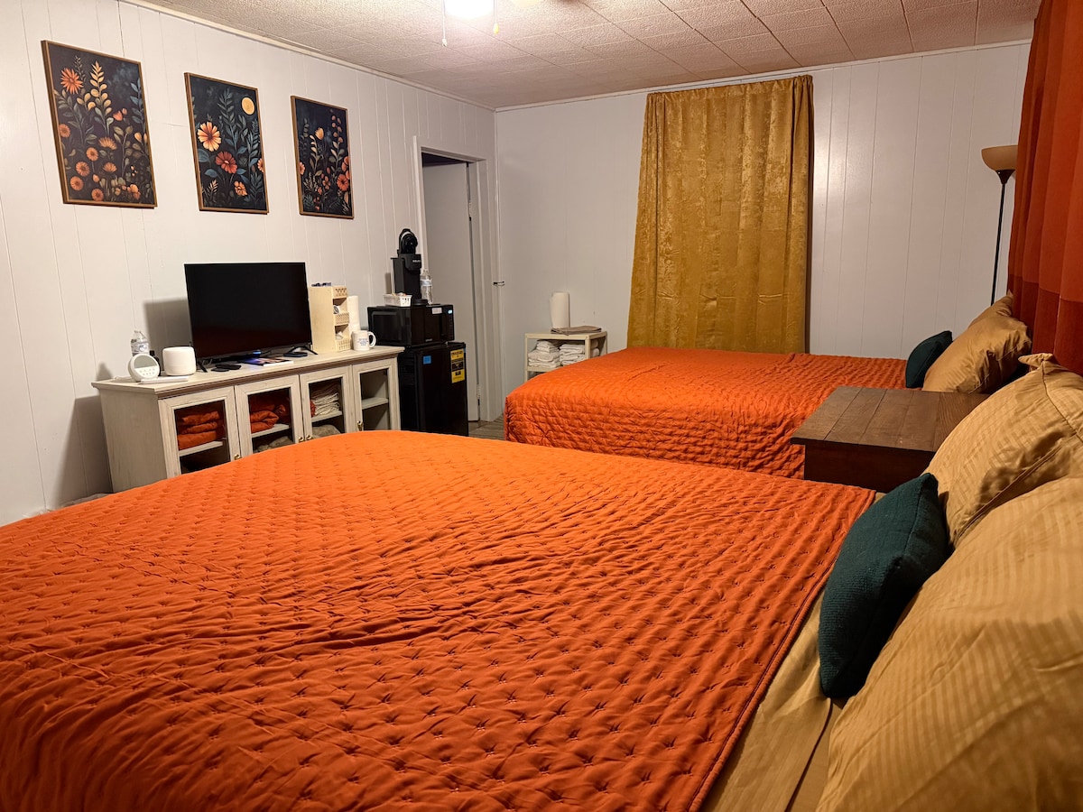This unique place has a style all its own. Modern, light industrial interior, located on a bluff overlooking the Sylamore Creek, just 500 yards from the White River in Mountain View, AR. You have your own private fire pit, picnic area and charcoal grill. The scenery is awesome and the location is right in the middle of everything. Minutes from the famous folk music square in downtown and just a few miles to Blanchard Springs. You are literally at the edge of the National Forest. You'll LOVE it!