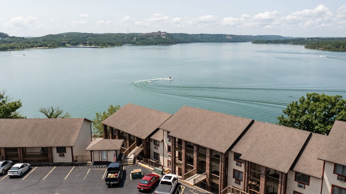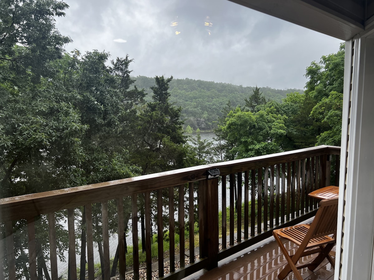Maybe the BEST VIEW on Table Rock Lake just 50 feet from water's edge! 2-bedroom/2-bath sleeps 8 in beds. Feels like you are miles from everything yet only 2-minutes to Silver Dollar City. Great Indian Point Location! FREE Kayaks, new pickleball courts and basketball available for all guests. Boat slip available in front of our place (with proof of boat insurance) - 2-swimming pools, 2-hot tubs, docks with swim/fish platforms, 2 boat launches on property. Greatest location on the Lake!