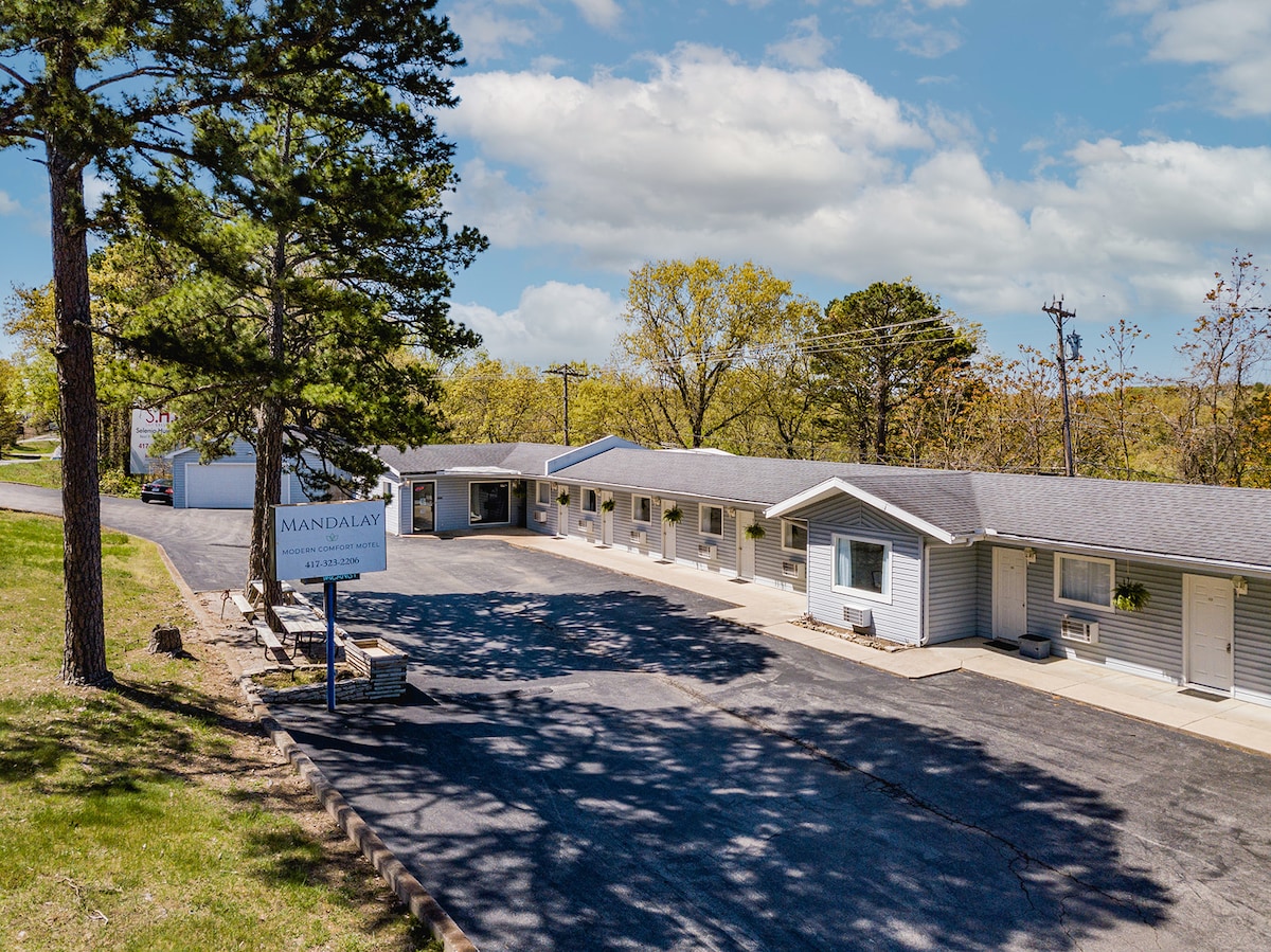 This newly remodeled boutique motel near Silver Dollar City and Table Rock Lake. The location is perfect for whatever activity you want to do in the Branson/Table Rock Lake area. The room comes with a queen size bed, a large 43" smart TV, fast wireless internet, complete with a table and two chairs, a mini fridge, microwave and k-cup coffee maker. Mandalay | Modern Comfort Motel.
