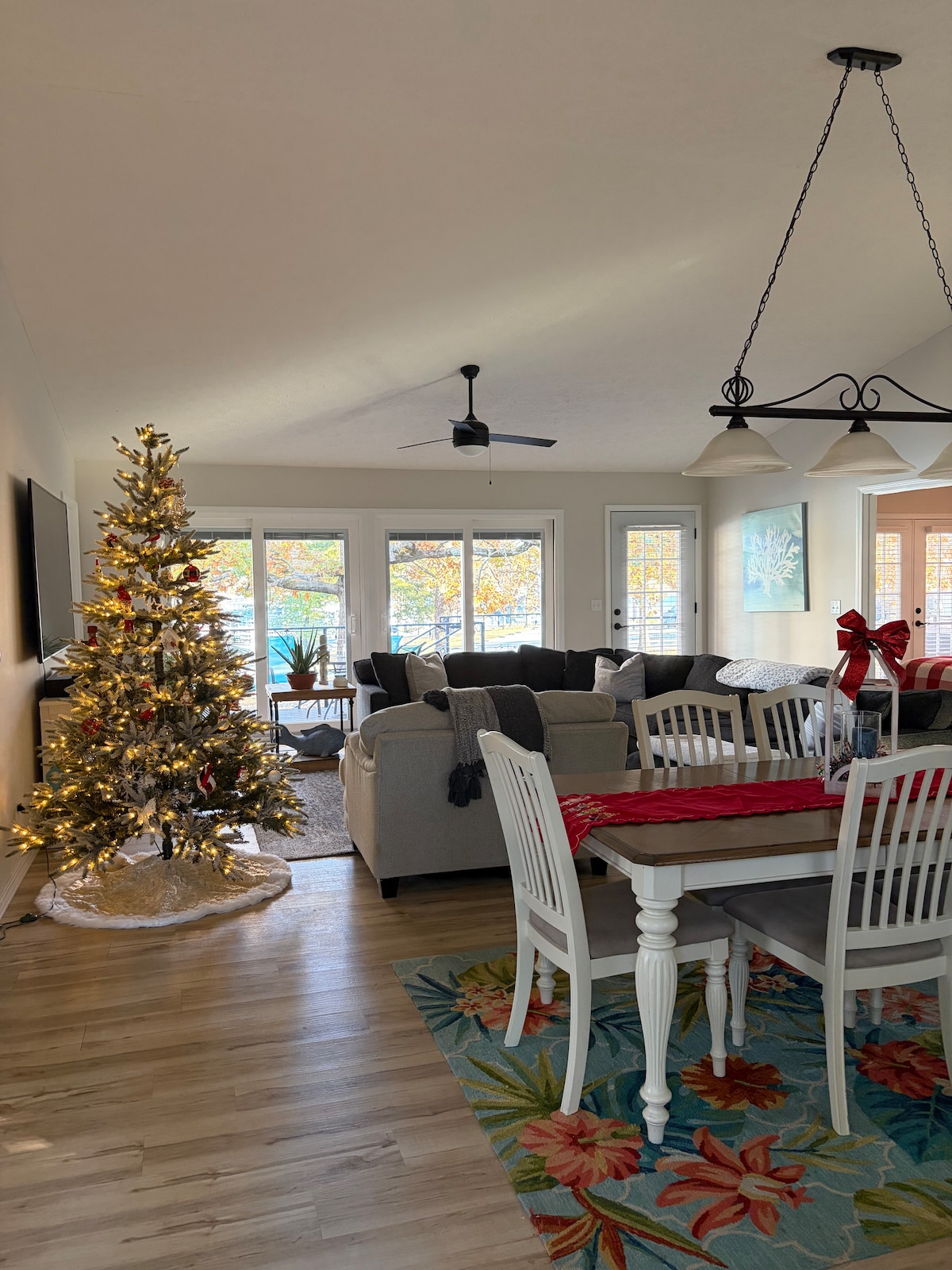 The Gathering Place is a brand new rental property at Tall Pines Resort. The property features a gourmet kitchen with high-end appliances, a large great room with vaulted ceilings, and a private back deck with a hot tub and wooded views. Dogs are welcome for an additional fee with prior approval. The property offers communal amenities such as a fire pit, walking trails, playground area, and disc golf. Come start your family's new tradition at Tall Pines!