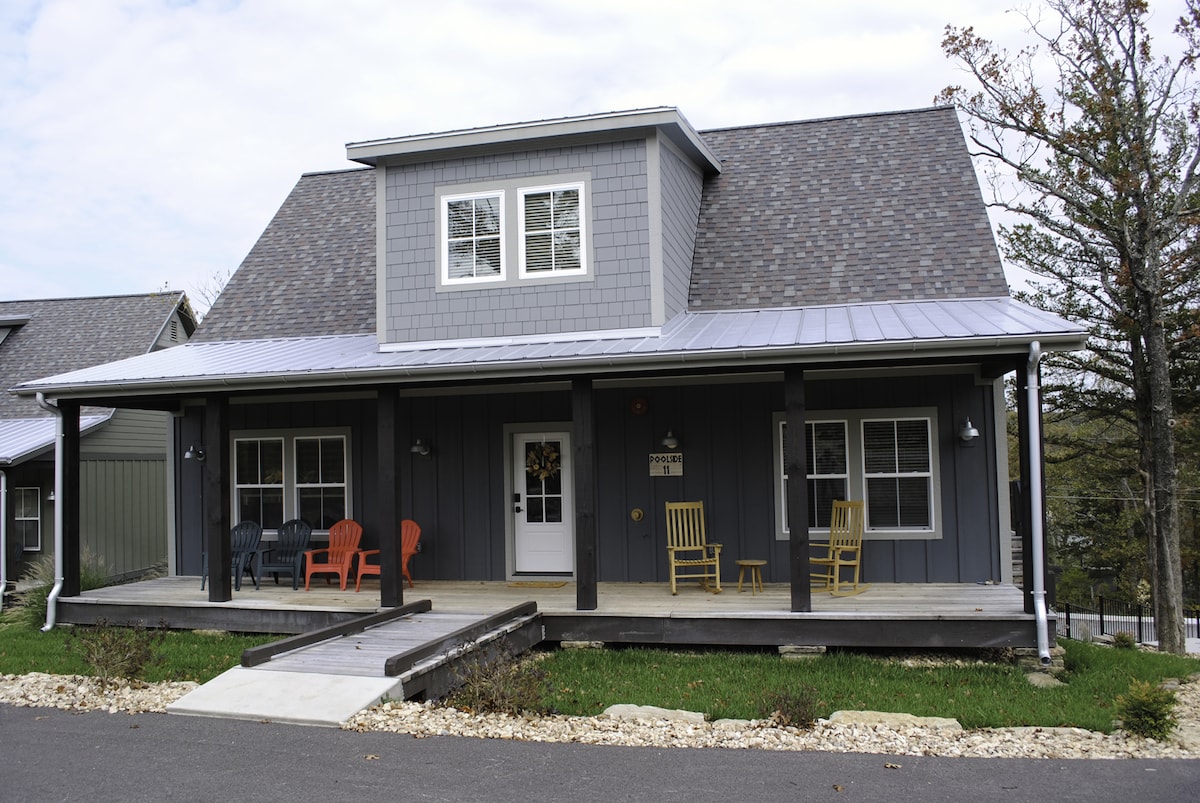Discover the Luxe Comforts of Our Modern, poolside 2370 sq.ft. Cabin - Sleeps 8! Ideal for Family Getaways, featuring a Fully Equipped Modern Farmhouse Kitchen, 3 Bedrooms, 3.5 Baths, and Kid-Friendly Grohe Showers and tubs. Enjoy 2 King Bed, En-Suites, and a Third Bedroom with 2 Single Twins and a Bunk Bed. Stay Connected with Free WIFI, Flat Screen TVs, and Suddenlink. Revel in Scenic Views from the Deck with Chairs, Complete with a Full-Size Weber Gas Grill. Your Perfect Retreat Awaits!