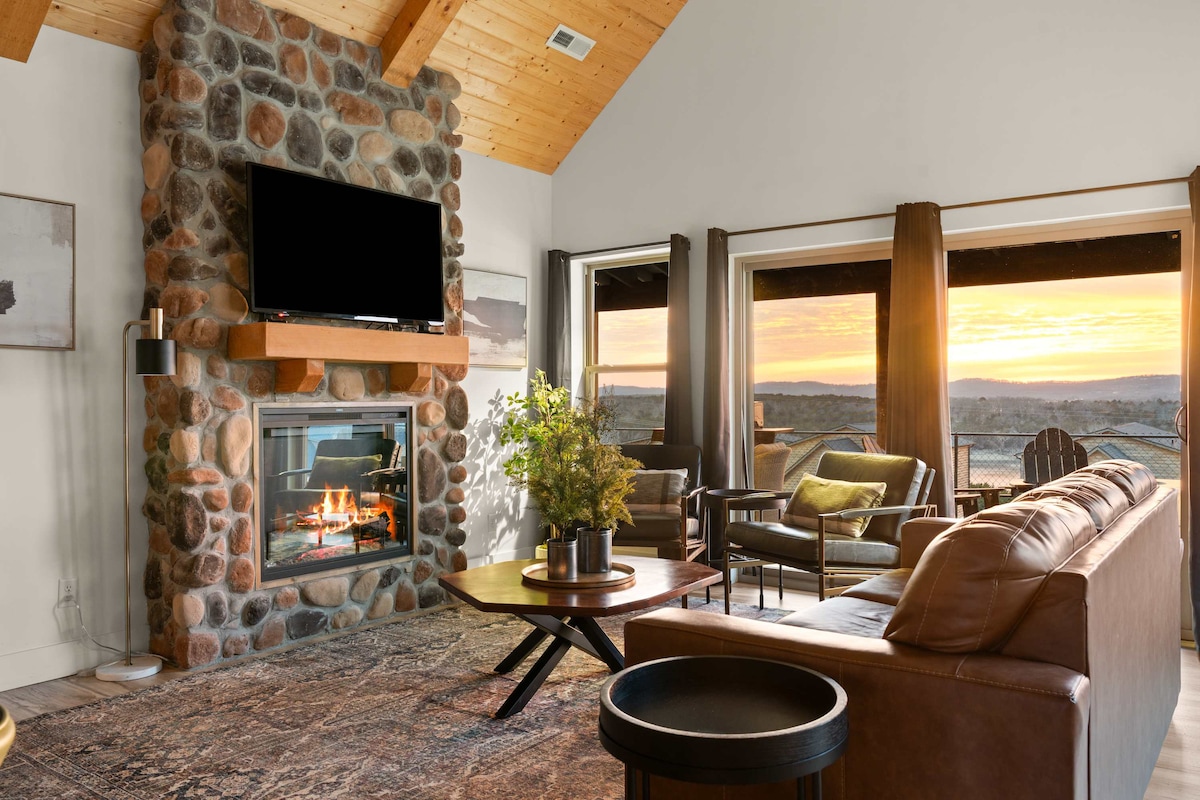 Spring & summer are calling! 🌞 Minutes from Silver Dollar City, this mountain-modern retreat on Indian Point brings thrill-by-day, chill-by-night: private hot tub, 3 fire features, sweeping Ozark views. Families, creatives, biz crews—everyone wins. Hit the park or lake, then stargaze by the flames. Prime dates vanish—book your epic getaway now! 🔥