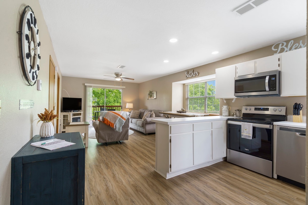 Welcome to Rolling Hills Condo — Your Escape to Tranquility and Relaxation! This spacious 2-bedroom penthouse in Indian Point offers breathtaking views of Table Rock Lake. Located in a quiet community, just minutes from Branson's best attractions, this condo blends comfort and convenience-easy access to all the excitement, with the option to unwind in a peaceful setting. This condo features a king, queen, twin bunk beds, and a pull-out sofa for ample space. Perfect for families or friends!