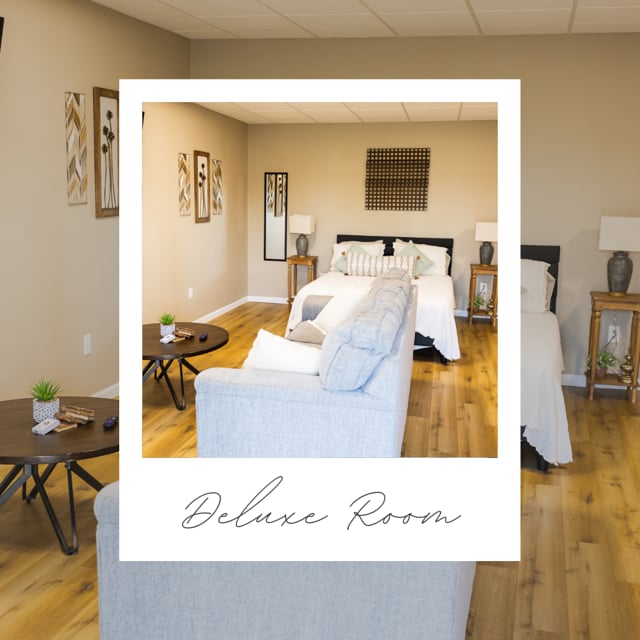 Our early 1900s Rustic Farmhouse offers 3-Bedrooms and 2 full bathrooms and the ability to accommodate large groups with a total of 9 beds (1 King / 6 Queens / 2 Twins). Featuring a full-service kitchen with cookware and utensils, living room with 55-in smart TV already connected to our free, secure Wi-Fi, make-up area on the upper level, washer and dryer in the entryway area, front porch, and large private back patio covered for all-year-round entertaining.