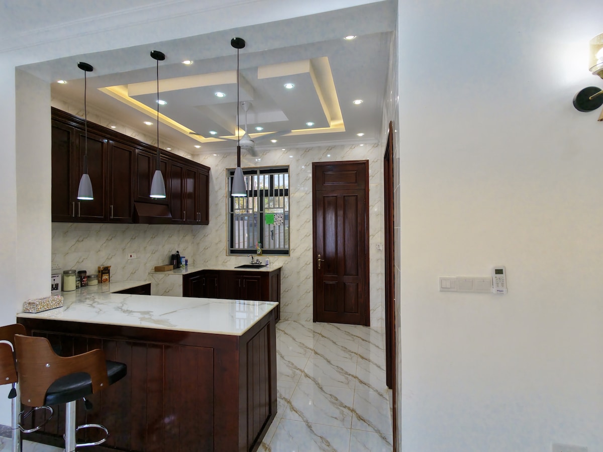 KKJ House is in Kikwajuni, Zanzibar, 800m from the Peace Memorial Museum, 1.7 km from The House of Wonders and 1.2km from Hamamni Persian Baths. This non-smoking holiday home features 3 bedrooms, 2 living rooms, and a fully equipped kitchen. It includes 3 bathrooms with walk-in showers, air conditioning, free WiFi, and a flat-screen TV. Popular attractions like Stone Town are nearby. The property is 6km from Abeid Amani Karume International Airport, with a paid shuttle service available.