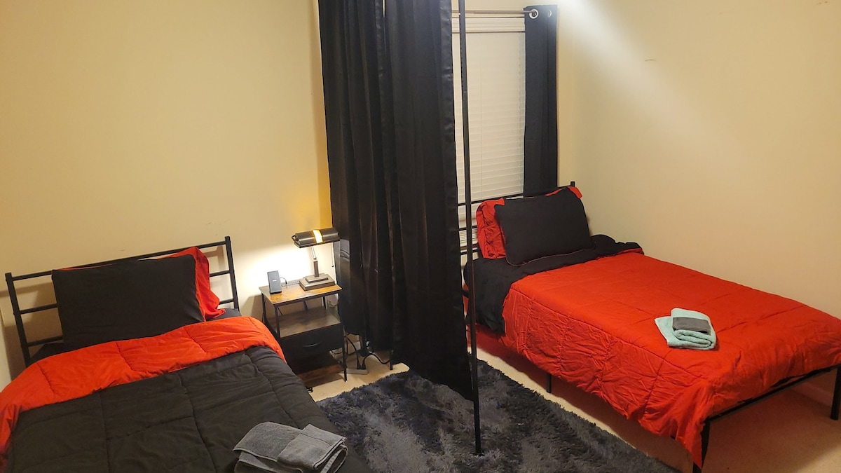 Welcome to this cozy condo only minutes from downtown Atlanta. This unit is part of a large, working-class complex that offers plenty of free parking. This condo is spacious and cozy. It offers 3 bedrooms, 6 beds overall, a fully stocked kitchen, 2 bathrooms, and one with a large garden tube. This condo has a 70” tv in the living room with Roku, and Netflix. Home away from home environment, with everything updated. Please ensure you have read and understood the bunk bed safety notice!!!!!
