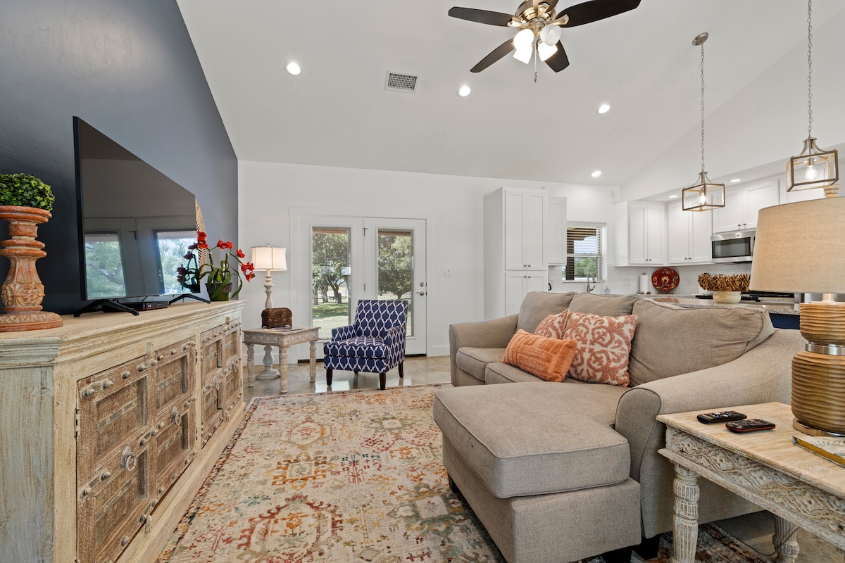 Nestled under towering oaks just 7 minutes from Boerne, the Cozy Oak Cottage offers a peaceful Hill Country escape where nature and comfort meet. Sip coffee as deer wander by, spot our friendly free-range chickens exploring the grounds, and enjoy the beautiful wild birds that visit the birdbath. A stylish, cozy interior, fast WiFi, and warm, thoughtful touches create a stay where guests feel genuinely cared for from the moment they arrive. Tap ❤️ and book your serene retreat today.