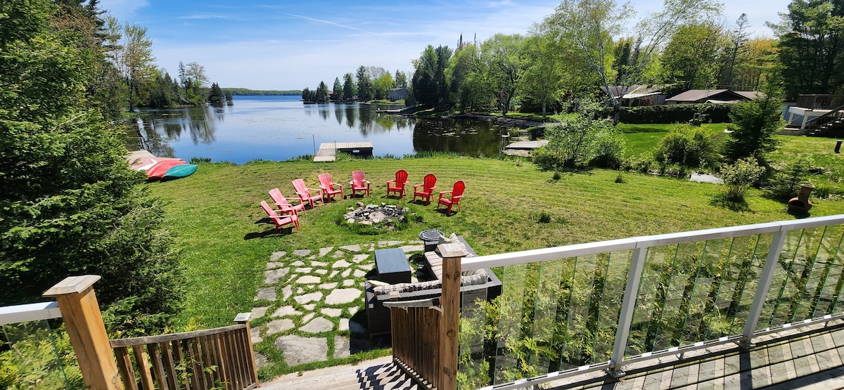 The Clubhouse is situated on a large partially treed property in the Kawarthas. This property includes a lake lot at the bottom of the hill with a dock to access Stoney Lake. Located close to boat launches at McCracken's Landing or Gilchrist Bay, Stoney Lake offers access to the Trent Canal System . A pedal boat, 2 kayaks and a canoe are available (guests should supply their own life jackets as they are required in all watercraft)