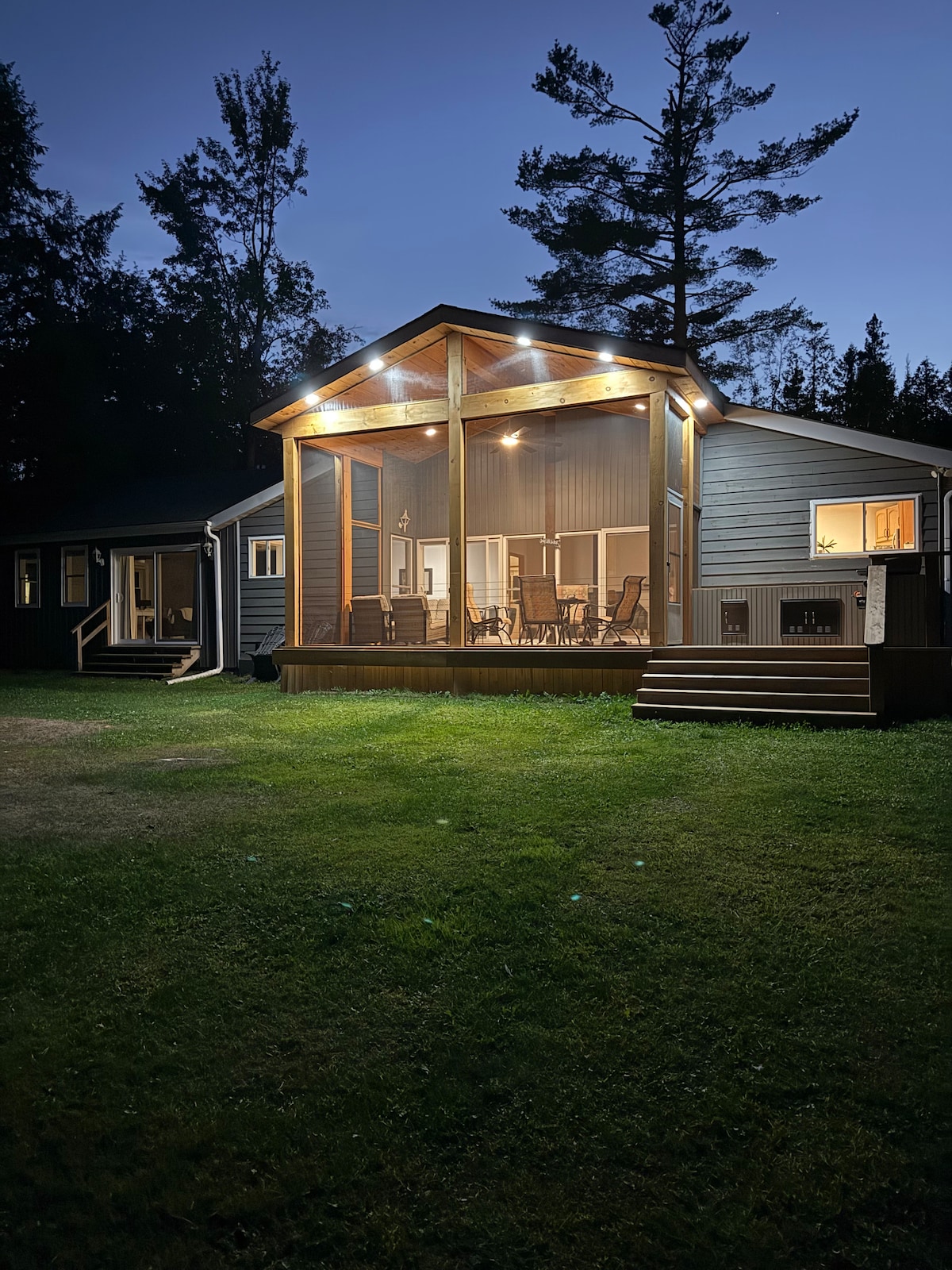Match Point – A private waterfront cottage on 3+ acres treed land with 3 bedrooms, 2 full baths, sauna, full-size tennis & pickleball court, basketball net, docks, canoe, and kayak. Enjoy lake views, starry nights by the firepit, BBQ dinners, and forested trails. Includes fast Starlink Wi-Fi, TV, full kitchen, laundry, and more. Pet-friendly and perfect for families or friends seeking a peaceful escape with space to play, relax, and reconnect with nature.