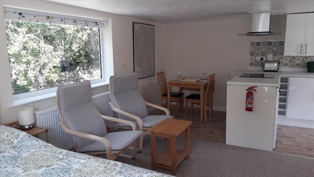 A spacious modern apartment in the heart of the Peak District surrounded by beautiful countryside. Great for families and for groups of friends that might want a walking holiday. Two of the bedrooms can be made up as twin beds or superkingsize. The third bedroom has a double bed. There is also a cot and high chair in the apartment. Stoney Middleton has a friendly pub, village chip shop, curry cottage and The Cupola, serving food etc. Chatsworth, Bakewell, Eyam and Grindleford are all nearby.