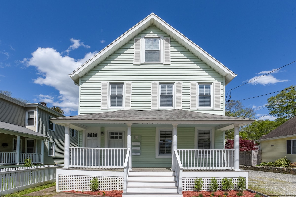 Thoughtfully designed with coastal living in mind! Located in the heart of Mystic, 5 min walk to historical Mystic Bridge, 10 min walk to Mystic Seaport, 10 min walk to train station and short drive to Olde Mistick Village, prime location makes it easy to explore! Free parking and beautiful back deck. Located in a duplex, you will have the top unit, my family friend lives on the bottom. I live a few streets over and am happy to give local recommendations! Will be decorated for Valentines Day!