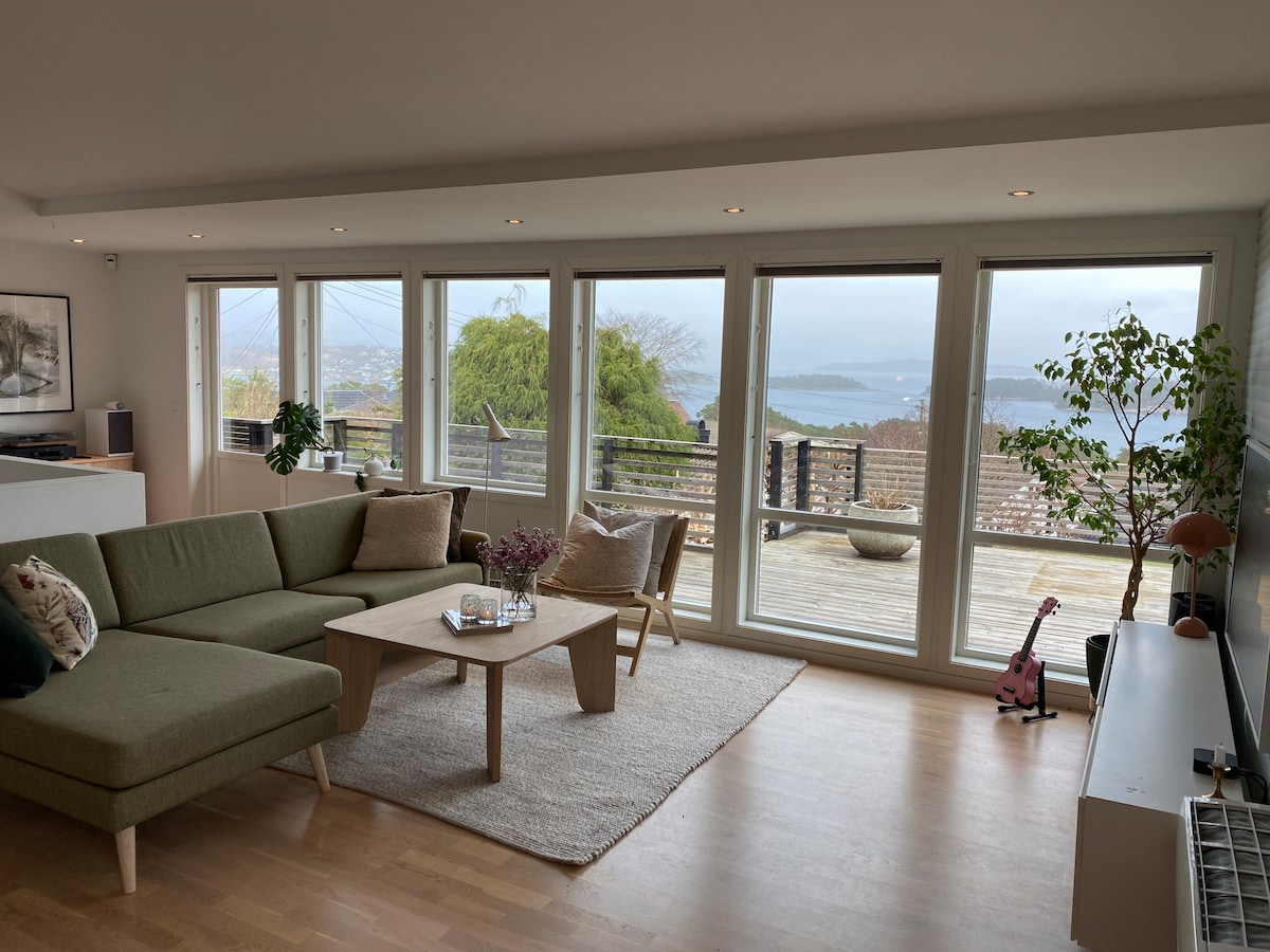 Stor villa med en storslått utsikt til leie på Stord. 5 min gange til sentrum og nærhet til alt du trenger, enten det er Aker, butikker, sjø, fjell, skog eller idrettsanlegg. Boligen har 4 store soverom med dobbeltsenger, to bad og ett toalettrom, nyoppusset moderne kjøkken med alt man skulle trenge av utstyr, to tv-stuer, en stor spisestue og et eget lekerom/treningsrom. Ute er det et stort utendørs kjøkken med både gass- og kullgrill og solrike uteplasser. Parkering for flere biler i tunet.