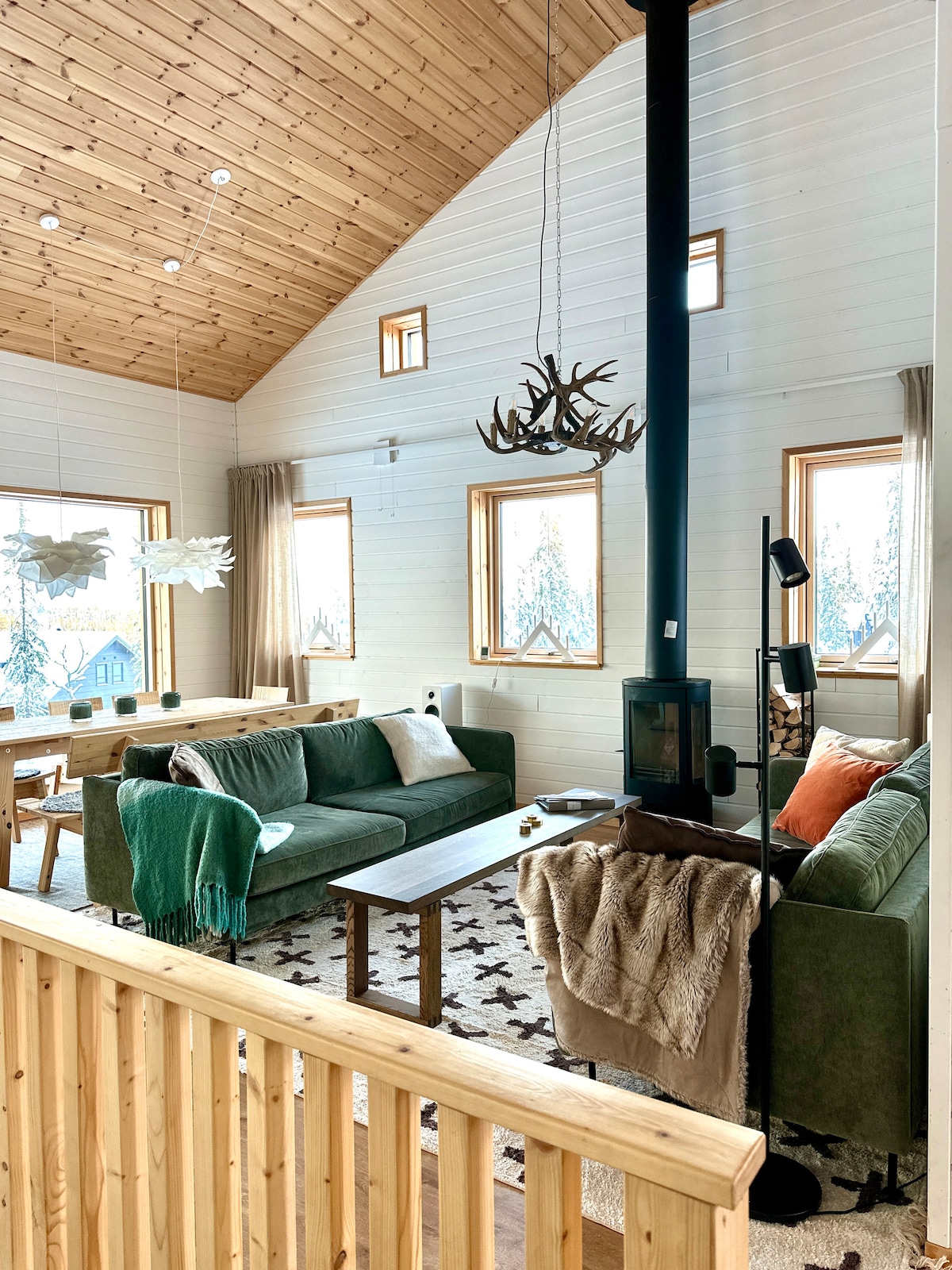 Magisk lodge i lugnt läge nära vandringsleder och med glidavstånd till skidåkning i både backar och spår. Efter en dag uppe på fjällen kan ni komma in för att basta, gosa ner i soffan vid öppna spisen eller njut av en middag runt det stora middagsbordet framför glasväggarna som ramar in fjällmiljön likt en stor tavla. Lodgen ligger nära Storhogna M där det finns restaurang, skiduthyrning, självbetjänande matbutik och bowling. 2 km bort finns högfjällshotellet med spa och fler restauranger.