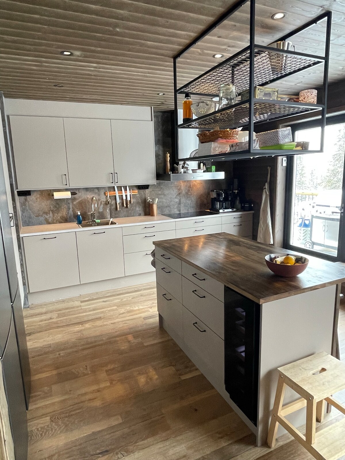 Magisk lodge i lugnt läge nära vandringsleder och med glidavstånd till skidåkning i både backar och spår. Efter en dag uppe på fjällen kan ni komma in för att basta, gosa ner i soffan vid öppna spisen eller njut av en middag runt det stora middagsbordet framför glasväggarna som ramar in fjällmiljön likt en stor tavla. Lodgen ligger nära Storhogna M där det finns restaurang, skiduthyrning, självbetjänande matbutik och bowling. 2 km bort finns högfjällshotellet med spa och fler restauranger.