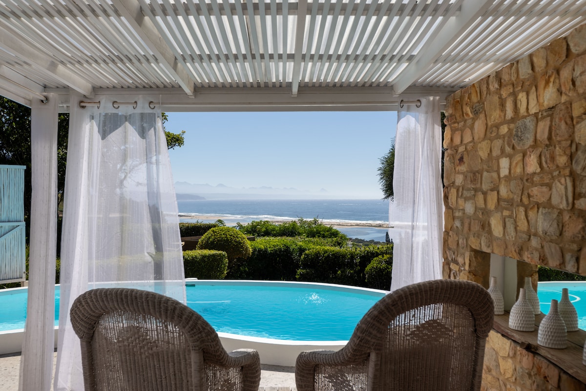 Tucked away in a milkwood garden, facing lush bush and mountain - this stylish coastal hideaway always has guests wishing they'd booked for longer stays. A short walk within the private nature estate finds the viewing deck overlooking all of Plettenberg Bay. Enjoy the unspoilt beauty of one of SA's most pristine coastal beaches . Wake up to birdsong; take long beach walks; spot dolphins; braai & chill on the sunny patio, before spectacular sunsets give way to African stars. Live lekker