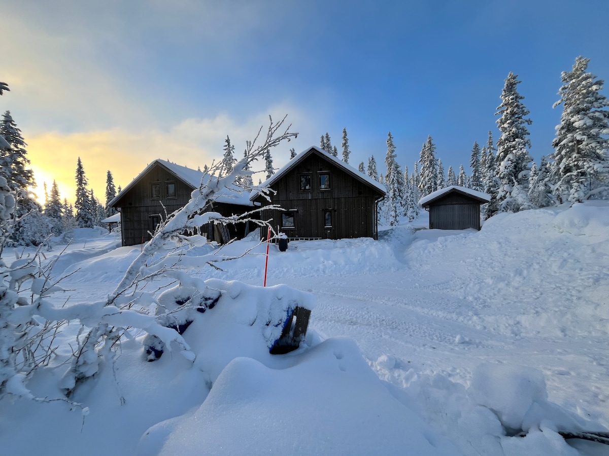 克洛卡山(Klockarfjället)上的现代木屋,靠近山坡!