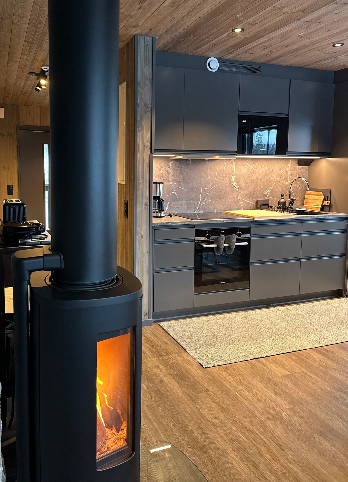 Stay at Erk Olsmyran, a peaceful area near Sälen’s main ski resorts. Lindvallen, Högfjället, Tandådalen, and Hundfjället are just minutes away by car, with cross-country trails and snowmobile routes right outside. This modern 104 m² house has 4 bedrooms + sofa bed (11 guests), open-plan living area with fireplace, sauna, 2 WC, laundry, EV charger, and private parking. Large windows, double-height ceilings, and sunny terraces offer light, space, and comfort for an active mountain stay.