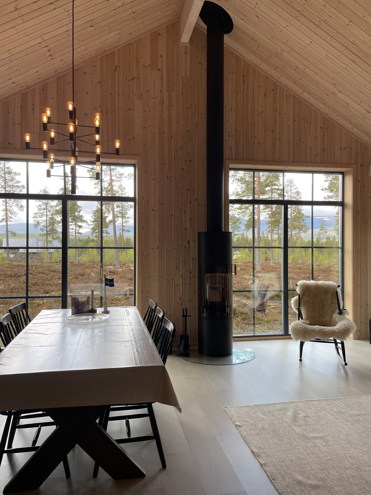 Njut av fjälluften i denna mysiga stuga med exklusiva materialval. Den höga takhöjden ger en magnifik känsla av rymd. Koppla av i den varma bastun efter en långpromenad på fjället eller efter kajakpaddling i älven. De stora, spröjsade fönstren ger en fint ljusinsläpp och en vacker inramning till tallar och fjäll. Fullutrustat kök och matplats för 6-8 personer. Upplev det bästa av svenska fjällen med oss! Boka din vistelse idag och skapa minnen för livet.