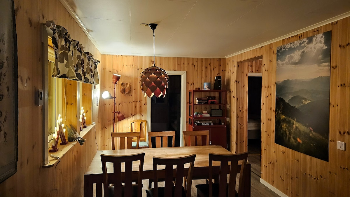 Het berghuisje ligt op een rustige, ruime locatie en is een ideale plek om volledig tot rust te komen en te genieten van de omringende natuur. Buiten vind je een groot terras met comfortabel meubilair en houtkachel, een grasveld, een sauna en een authentieke Scandinavische grillhut met open vuur en warme rendierhuiden. Een heerlijke plek om te ontspannen, te koken en te eten. Vanuit het huisje wandel je zo het bos in of naar schilderachtige zwem- en vismeertjes. Wintersport volop in de winter!