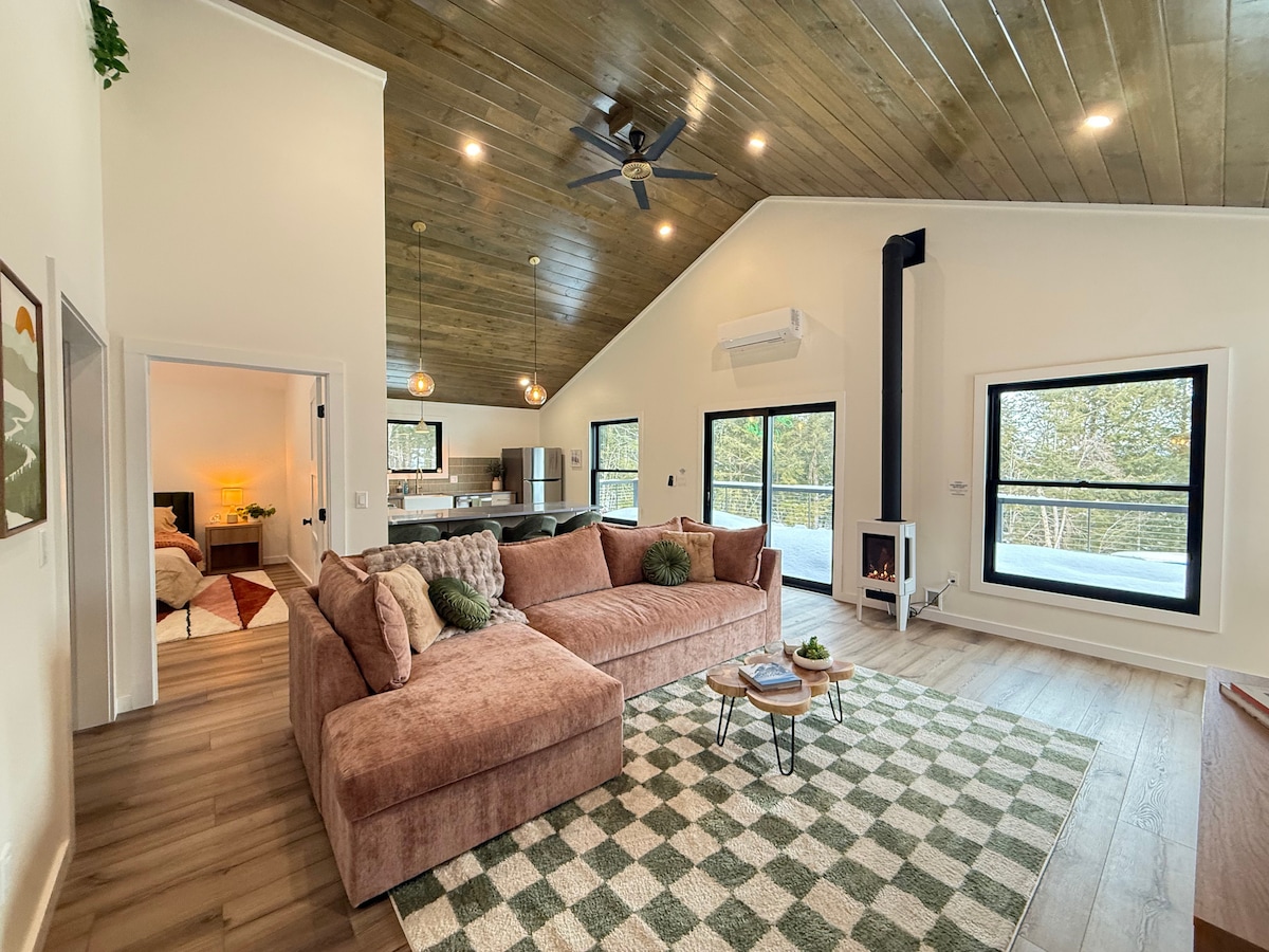 Welcome to The Summit House, a completely renovated A-Frame cabin less than 1 mile to downtown Stowe. Wake up to views of the morning light casting through the forest from your glass wall bedroom. Relax after a day exploring the mountains in the huge spa style rainfall shower. Settle down after dinner around the modern wood burning fireplace while watching your favorite shows on the 50" TV. It's not just a rental, it's an experience. The latest addition to the OM Home Residences collection.