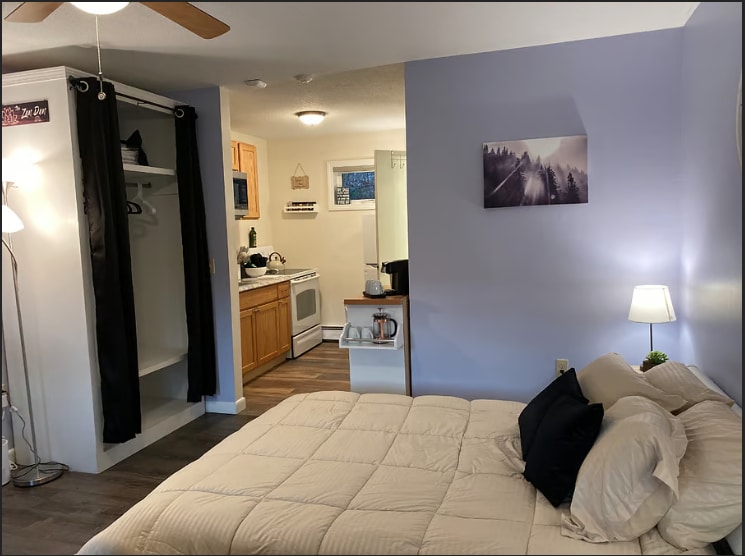 Zenbarn Loft: A Cozy 2-Bedroom Retreat Above Vermont’s Iconic Music Venue 🎶⛰️🍻 Stay in the heart of Vermont, just minutes from Stowe, Waterbury, and top breweries like Alchemist and Lawson’s! This 2-bedroom suite offers a cozy retreat with a kitchenette, fast WiFi, and a private entrance (shared hallway). Live music below creates a vibrant atmosphere. Please message us before booking with any questions to ensure this is the perfect stay for you!