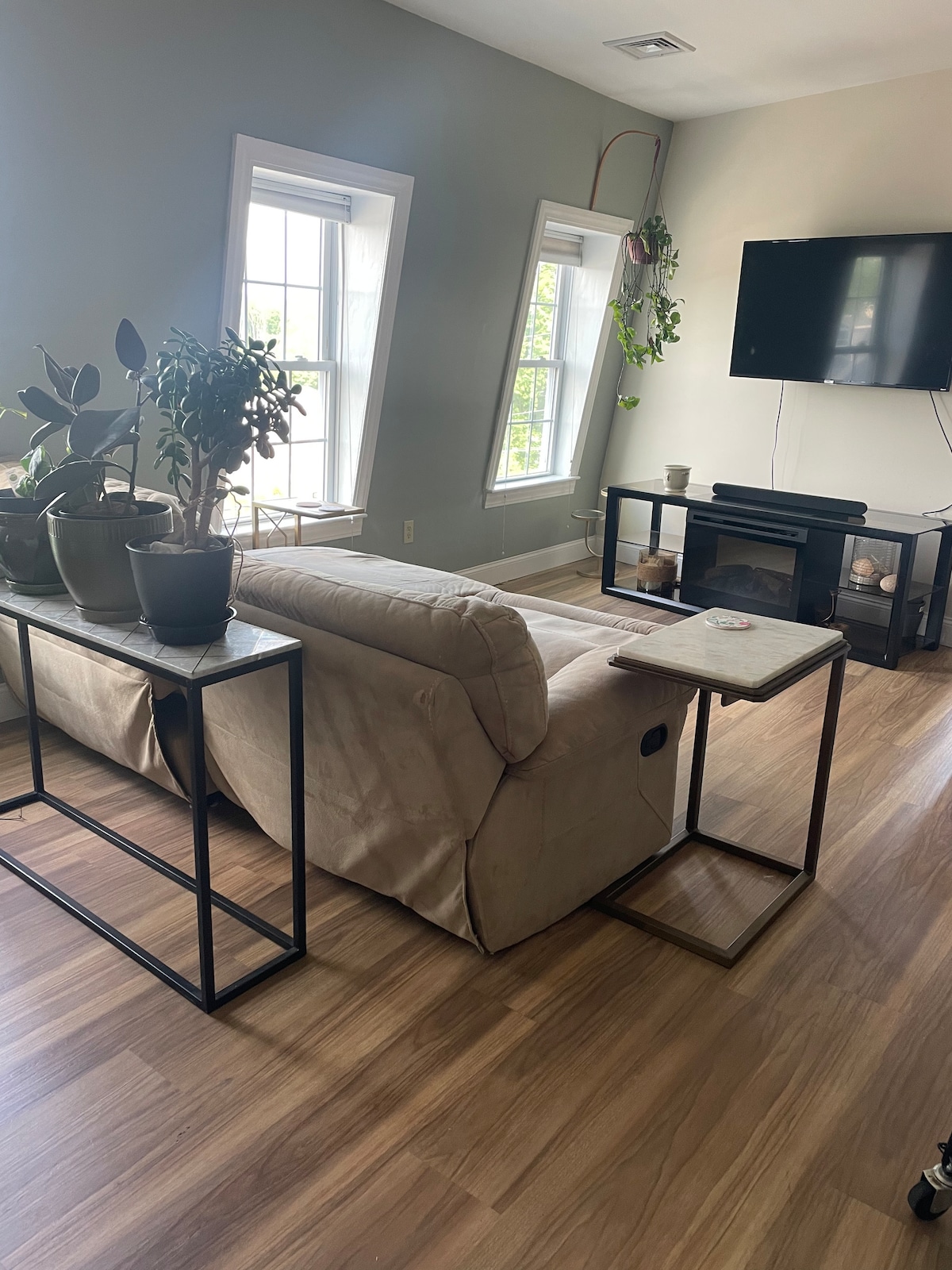 Our home is tucked away off of Washington Street and feels secluded though we are walking distance to downtown Dover. Our home was built as a warehouse 100 years ago and was converted to a residence in 2009. The apartment has a separate entrance from the rest of the house and has a private deck. The space is light and airy, both rustic and contemporary, with old floors and exposed rafters. We are a short walk to restaurants and bars, and the train to Boston or Portland, Maine.