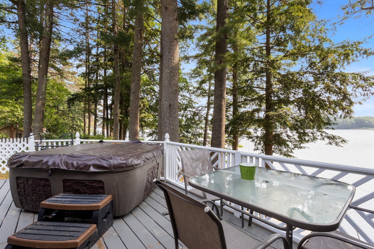 🛶 Lakeside with sandy beach & 4 Kayaks 🛥️ Dock to boat, swim & fish - 750 acre lake! 🔥 Hot Tub for 6 people overlooking the lake 🛋️ Living rooms on both main and lower levels ⚽ Big TVs and a Foosball table 🌲 3 minute walk to wooded walking trails 🍓 2 mins to McKenzie's Farm (farm stand, fruit picking, fresh apple cider donuts) 🛷 15 mins to Moose Mountain snow tubing ⛷️ 40 mins to Gunstock skiing 🦞 35 mins to Portsmouth, 65 mins to Portland 🏢 80 mins from Boston metro