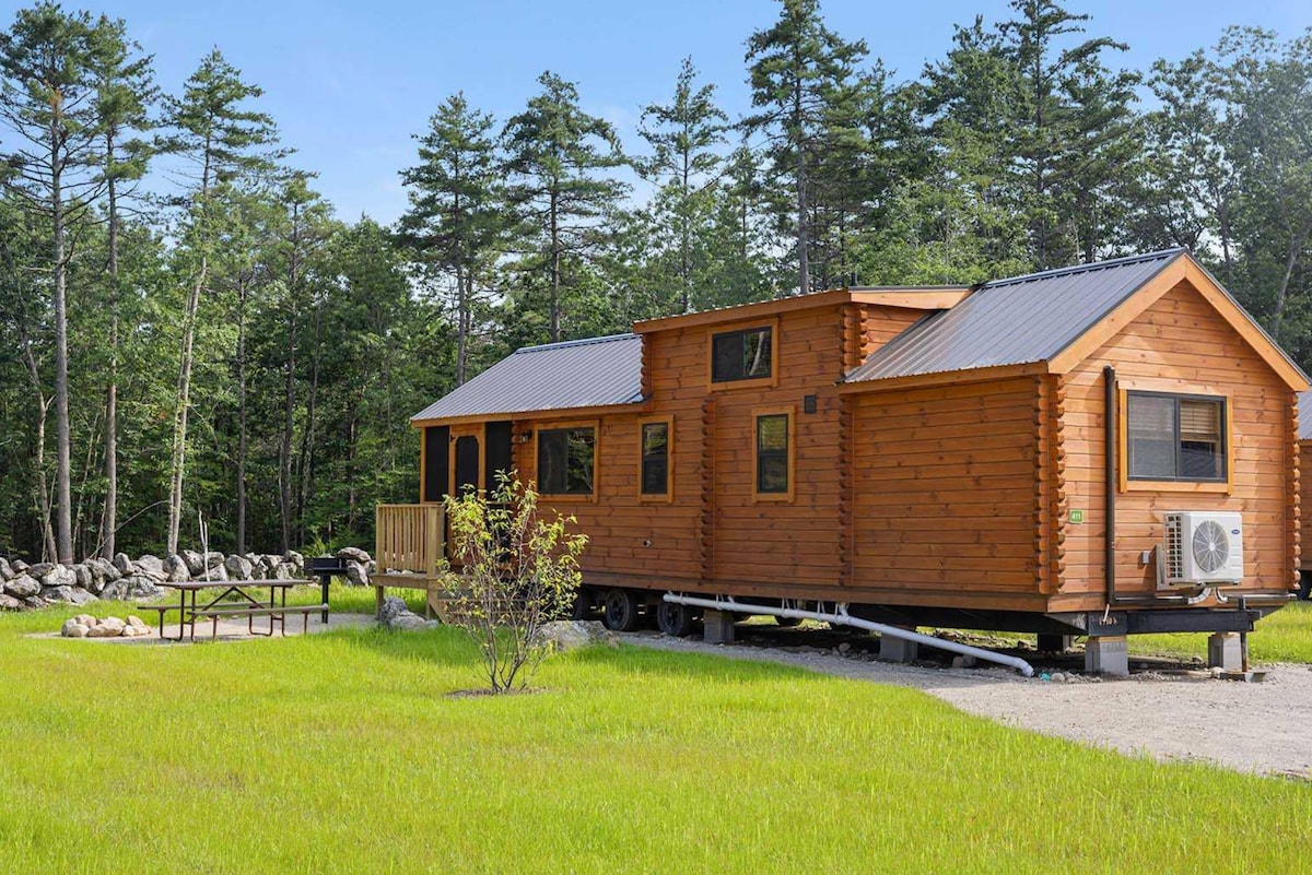 This quaint & cozy cabin is located in a quiet setting of Lazy Frog Campground equipped with all the necessities required for an enjoyable stay; kitchenette with a dorm-size fridge, microwave, coffee maker, 2 burner electric hot plate & housewares (pots, pans, utensils & place settings for six), 3/4 bath, bedroom with queen bed, loft with 2 twin beds. Nurture your senses outside with nature's surroundings. Grill, picnic table, grass & steps to Polliwog Pond. Porch Rockers & private fire pit.