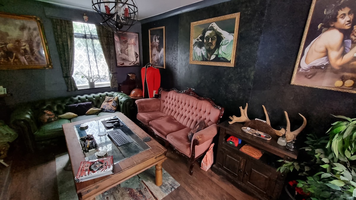 Basils Barn is situated on the grounds of a 17th century manor, surrounded by a picturesque 60 acre estate. The bedroom is directly attached to Basils stable, where there is a doorway in between the two spaces. In the paddocks we also have a herd of Highland cows, Hebridean sheep, horses, pigs, chickens and Norwegian Forrest cats. Our animals are mostly rescued and all of our animals are kept strictly as pets.