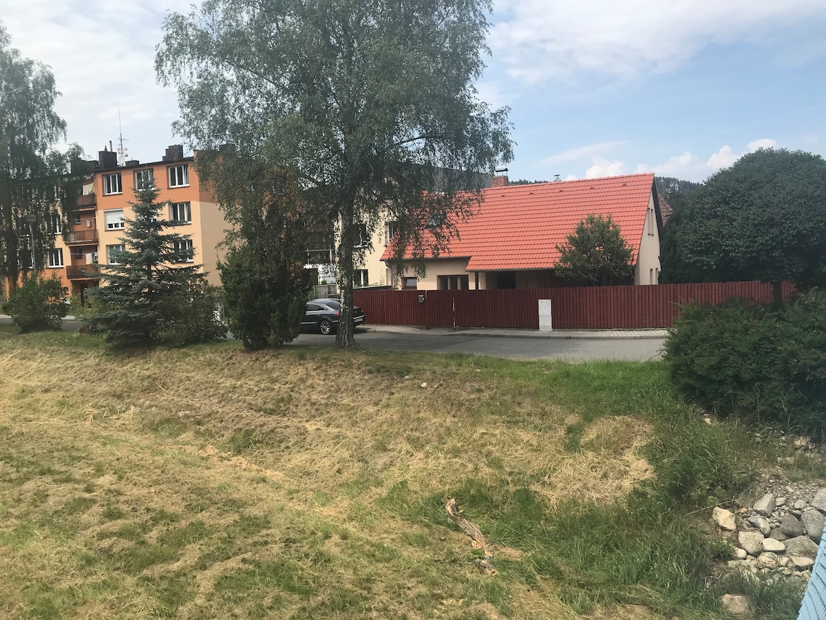 Our holiday home near Orlík, just a short distance from the castle, is ideal for families with children. While it may be snowy outside, you won't be bored here! The living room has a children's corner, upstairs there is a spacious children's room with a pile of toys. The large common room with a home theater will provide you with lots of fun. We also have a high chair and a travel cot for the little ones. And when you get tired of the warmth of home, walk around in lovely country