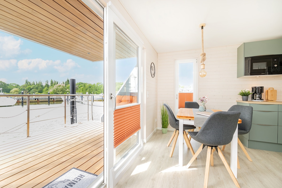 Urlaub auf dem Wasser – vom ersten Augenblick an! Erleben Sie pure Entspannung und das entschleunigte Leben auf dem Wasser – ohne auf den gewohnten Komfort einer Ferienwohnung zu verzichten. Genießen Sie erholsame Stunden auf der geschützten Terrasse oder dem großzügigen Sonnendeck mit Blick auf die Altstadt von Stralsund und die Insel Rügen. Verbringen Sie Ihre Auszeit an Bord des neuen Ferienhausbootes MeerZeit, das ruhig am Strelasund liegt – mit freier Sicht auf die malerische Insel Rügen.