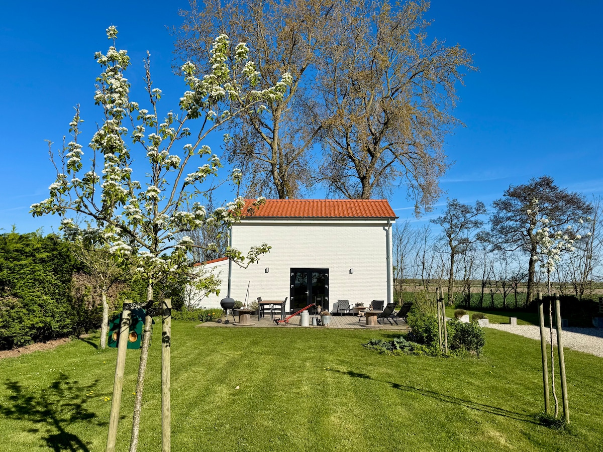 We would like to welcome you in our new 4 star holiday home, equipped with its own terrace, bathroom, kitchen and WIFI. Countryside area just next to Bruges. Den Vooght is on the 1st floor and has 1 bedroom, 1 fold out double sofa bed, sitting and dining area and bathroom, perfect for 2 adults and 2 children. The attractive decor and spacious rooms bring cosiness and maximum relaxation. You can make use of our wellness area with rain shower, sauna and wood-fired hot tub at extra charge.