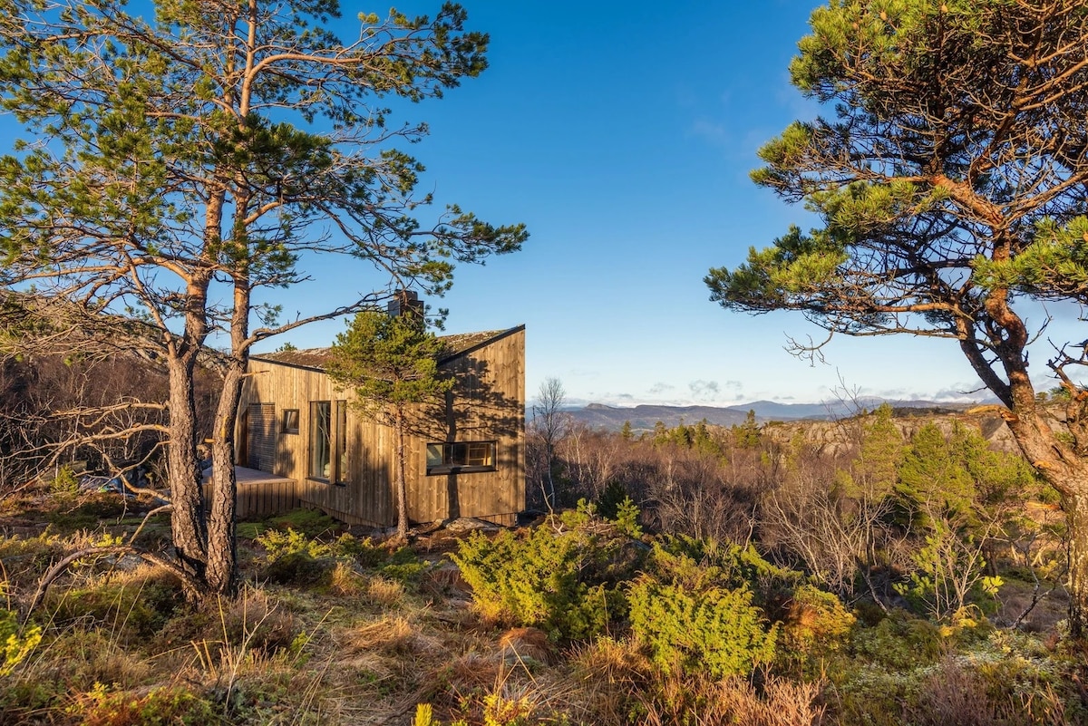 Lovely one level holiday home, nicely located in the terrain, short distance to the sea. Amazing views and sunny conditions from morning to sunset. Located in a quiet area, only 30m from parking. (20min by car to Pulpitrock hike start) Folding door at the front and two large sliding doors give the option to open up to nature outside. Fishing and bathing opportunities only 120m from the cabin. Wood-burning stove inside and outdoor wood fireplace. All bedrooms have light-proof sun shading.