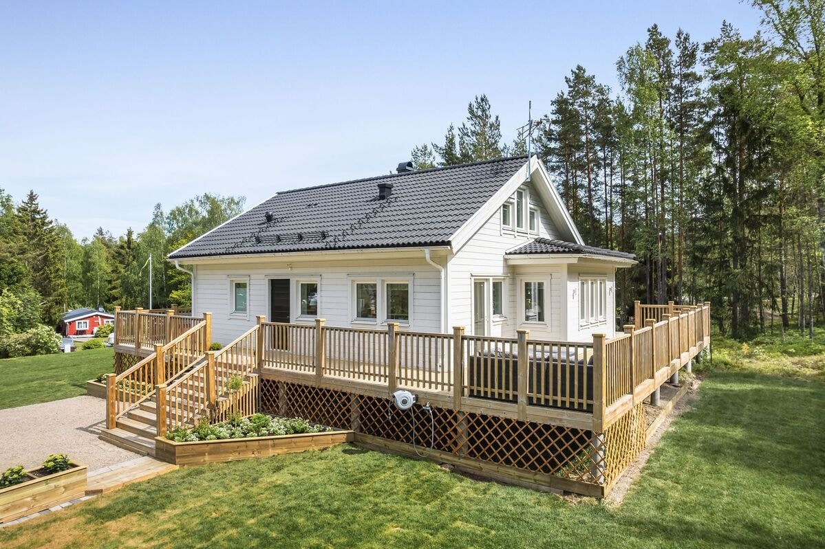 Newly built modern cabin in the woods with amazing lakeview. The house was built in 2020 and is located on a hill near Lake Mälaren just 1 hour from Stockholm. The house has 3 bedrooms, 2 of them with double bed and 1 with a bunk bed. All bedrooms have black out curtains so that the bedroom gets completely dark. 1 bathroom with a toilet and 1 guest toilet. There is also a newly built sauna.A large living room / kitchen with an amazing view through the large windows. Parties are not allowed.