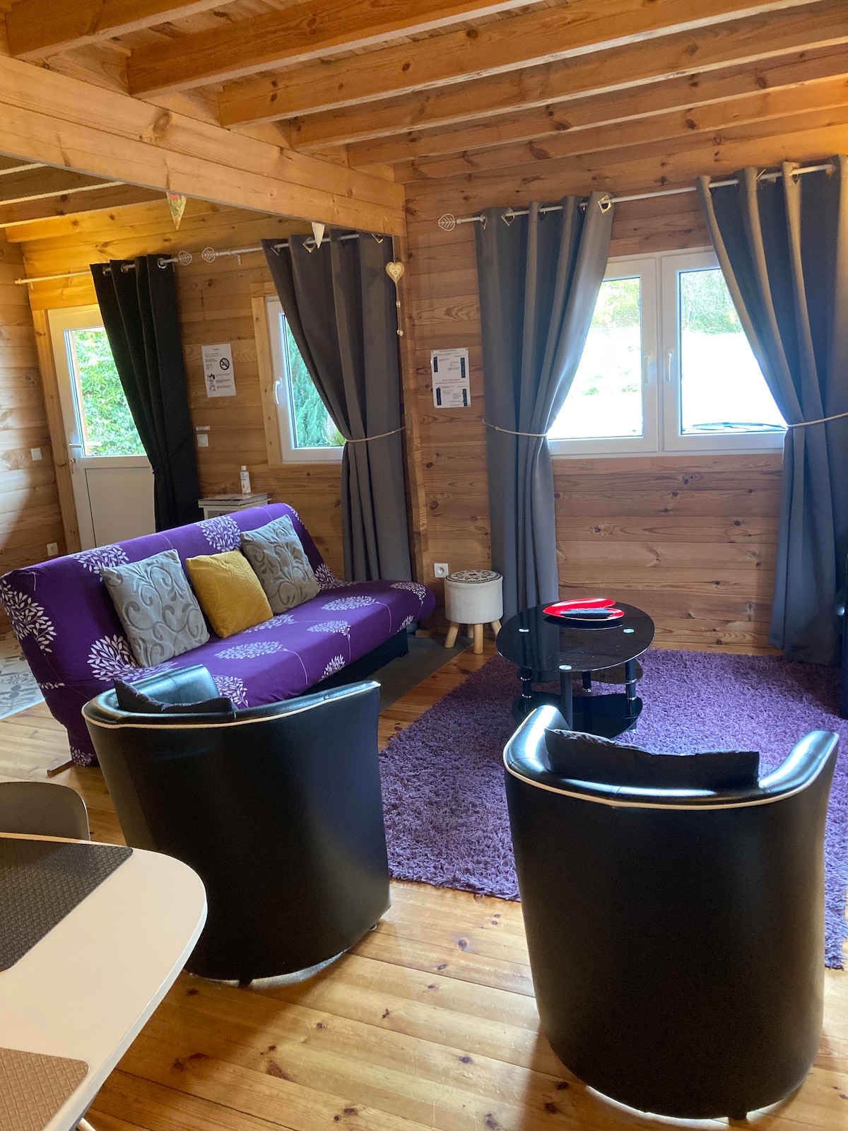 Mon chalet dispose de 4 chambres dont 3 avec lit double et une chambre avec'1 lit superposé et un lit double .2 salles de bain 2 wc , deux chaises hautes pour bébé ainsi que deux lits parapluie sont disponibles ,une cuisine équipée convivial une machine à café à grains un salon une terrasse avec barbecue qui est fonctionnel en saison c est à dire de mai à fin septembre . Le bois est non fourni .une deuxieme terrasse avec salon de jardin ...