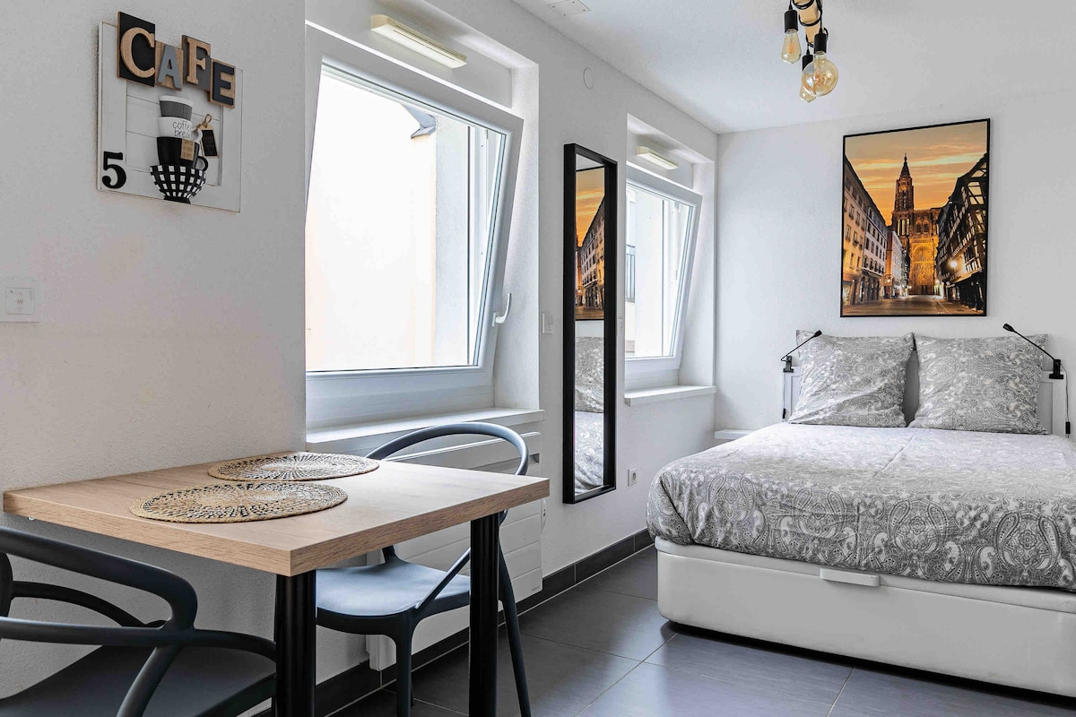 Passez un agréable séjour au cœur de Strasbourg dans ce studio situé au 1er étage sans ascenseur. Bel emplacement au bord des quais, vous serez à quelques pas seulement de la place de la Cathédrale, et pourrez profiter de la vie Strasbourgeoise avec ses restaurants, son marché le samedi matin et de ses animations tout au long de l'année. Tout confort et fonctionnel, le logement est idéal pour les couples, amis et voyages d’affaires, idéalement situé lors de la période du marché de Noël.