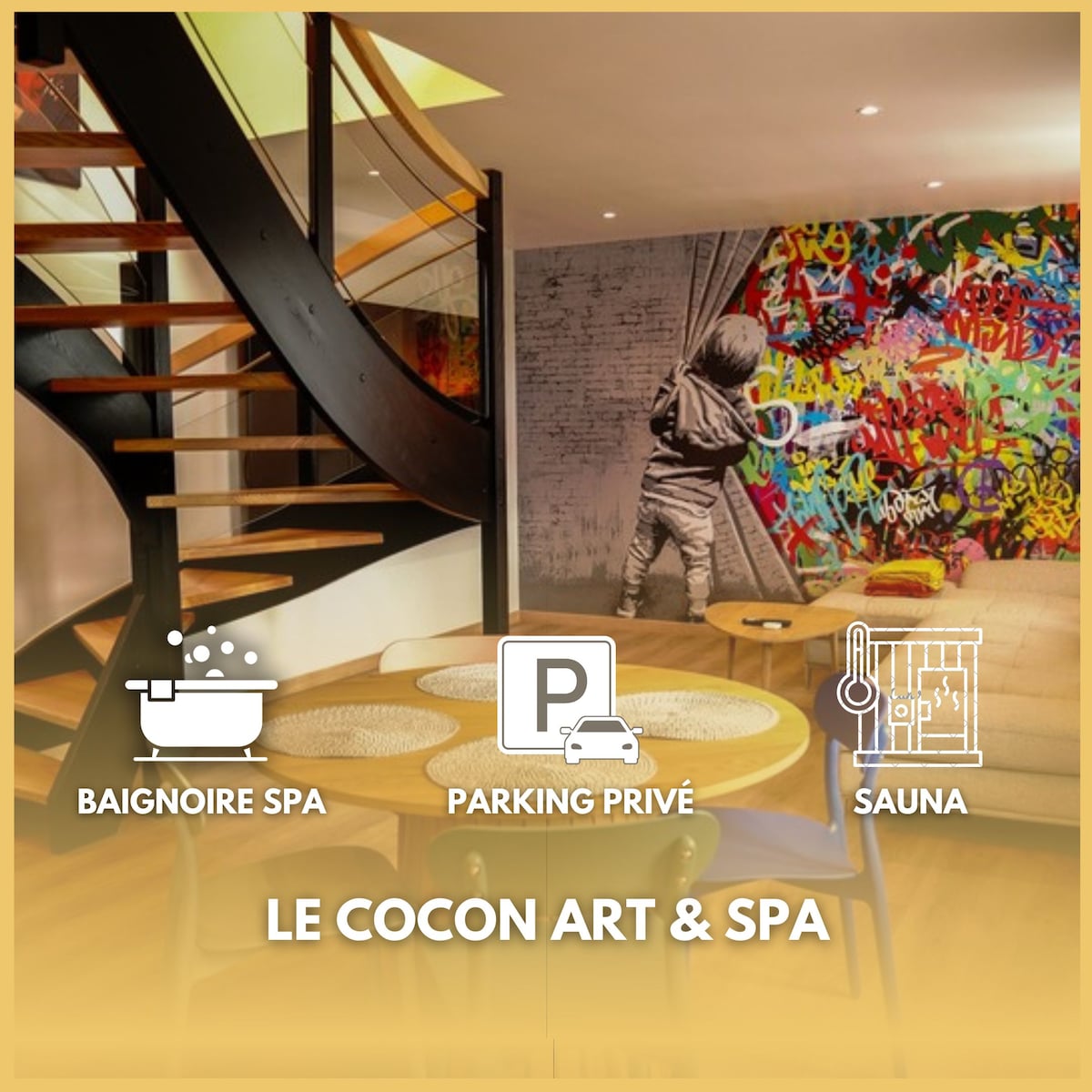 Découvrez notre élégant loft de luxe, un véritable cocon de raffinement et de passion, conçu pour une escapade inoubliable. Envie de raviver la flamme ou de surprendre votre moitié ? Offrez-vous une nuit romantique dans un cadre d’exception, agrémenté d’équipements et d’accessoires haut de gamme Pour sublimer votre expérience, des options supplémentaire sont également disponibles. Si c’est pour se faire plaisir, autant le faire sans compromis !