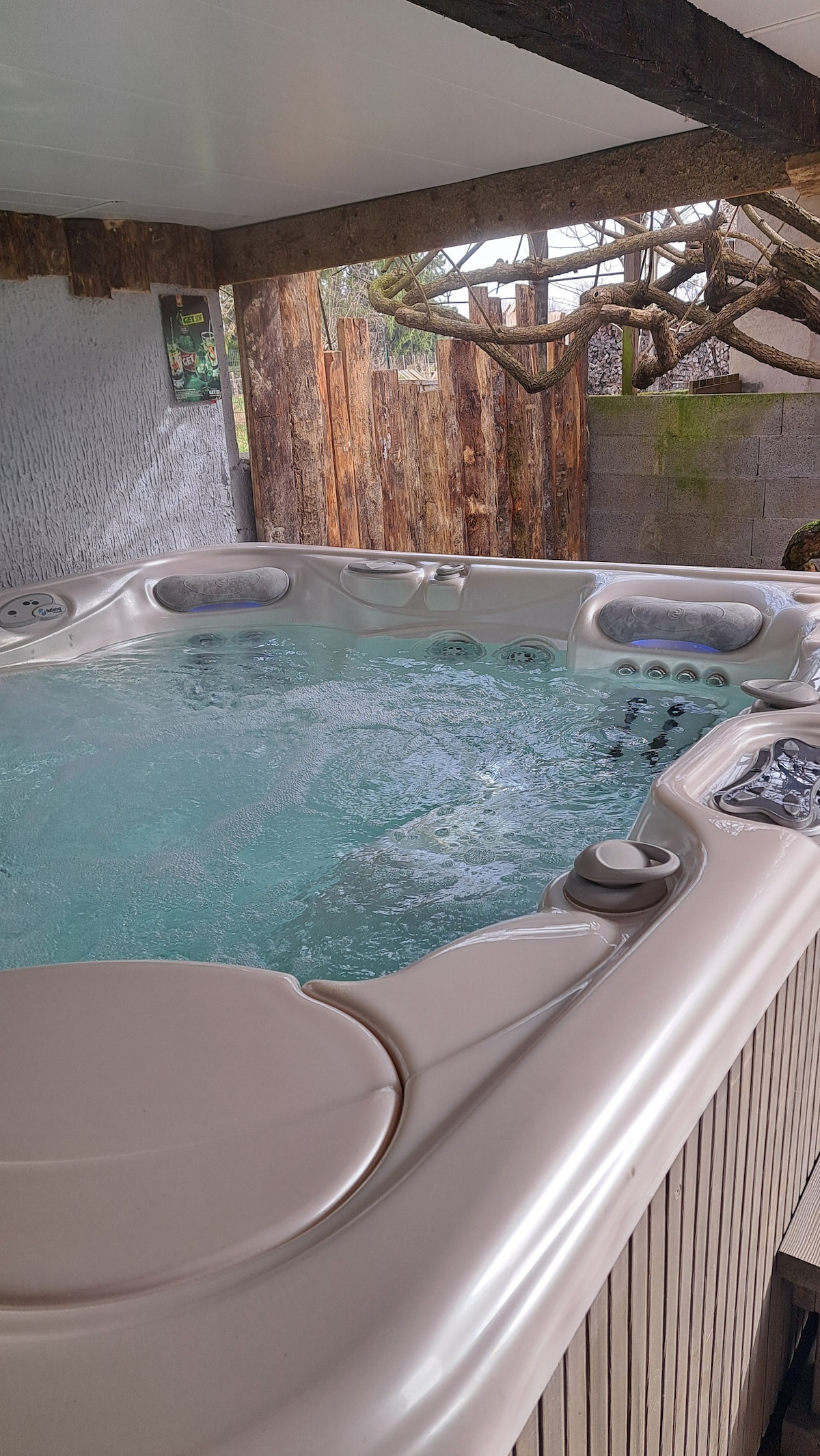 Beautiful new cottage (still being finished, available in September 17). 2 rooms including 1 family (with mezzanine for the children). In the heart of the commercial city. The gite is centered around the central room where one can enjoy the indoor pool. 1 double room, 1 bedroom 1 double bed + 2 single beds on the mezzanine. 1 living room with double sofa bed. 3 bathrooms. Jaccuzi interior by the pool. Fully equipped kitchen. Visible beams.