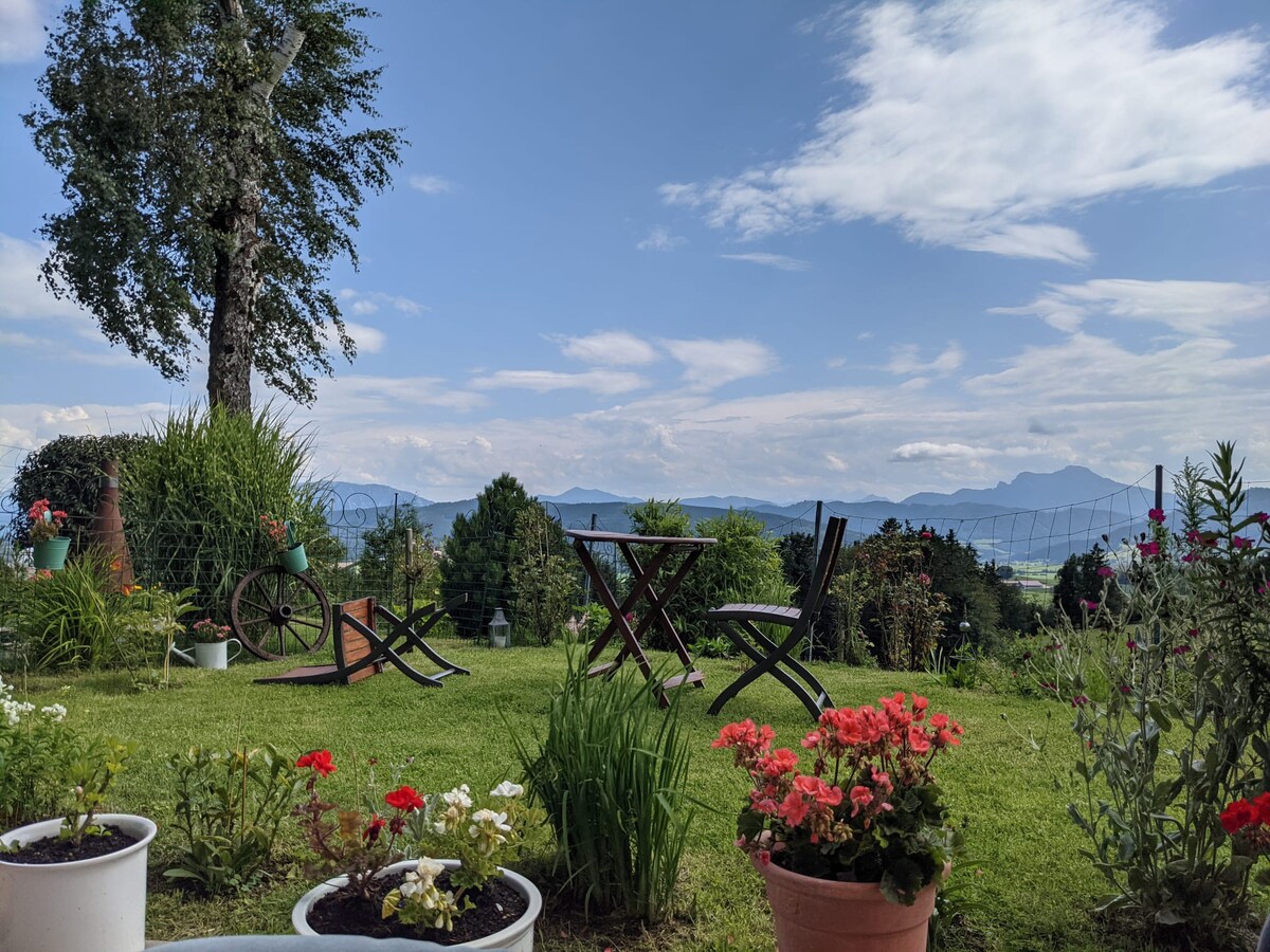 Dort, wo die Seele den Körper einholt und der Geist befreit wird. In einer Lage, in 850m Höhe in einem winzigen Dorf bieten wir in vorderster Reihe einen 180-Grad-Alpenblick hoch über dem Attersee. Genießen Sie die Freundlichkeit, Herzlichkeit und den Humor der Gastgeber. Entspannen Sie in der Luxeriosität der Stille und zugleich bei der Möglichkeit zur Aktivität (Wandern, Mountainbiken, Schneeschuhwandern). Attersee(10km); Autobahn (7km); Salzburg (ca. 50km); Mondsee (ca. 30km),Hallstatt (60km)