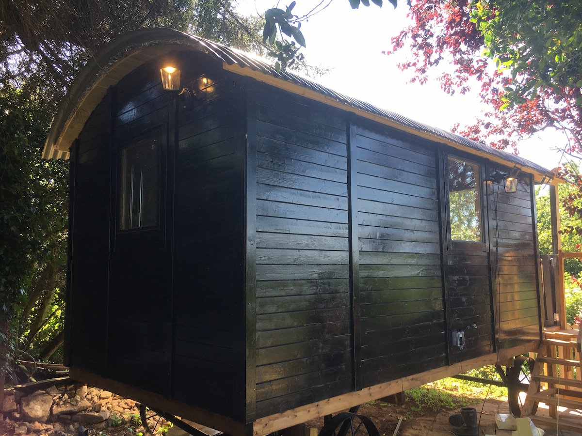 Get away from it all in a cosy shepherd’s hut amongst trees in a beautiful rural location. Tom's Hut has a comfortable double bed, storage below and a compact kitchen unit with double gas hob, sink and fridge, pots, pans crockery and cutlery. Keep warm with a wood-burner and ready supply of wood, or underfloor heating. Outside, there is a table for al-fresco dining. A newly built, heated, shower room is close by along a short path adjacent to the hut. Just 3 miles from Newent and various pubs.
