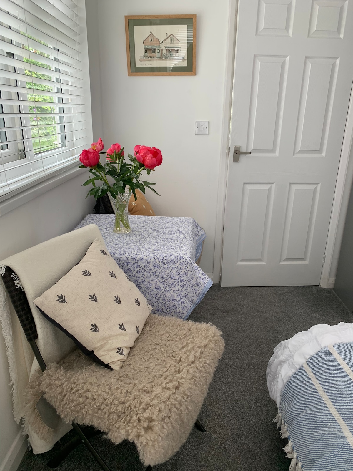 I provide this small annexe ,purpose built, at the side of my house with its own private entrance, parking outside. It provides a double bed in clean bedroom with TV .There is an en suite bathroom with shower , basin and toilet . Towel provided. There is a small lobby / storage area with microwave, small fridge , toaster and Kettle . I provide cereal , bread , butter , marmalade , marmite , tea , coffee , hot chocolate , peppermint tea and oat milk .