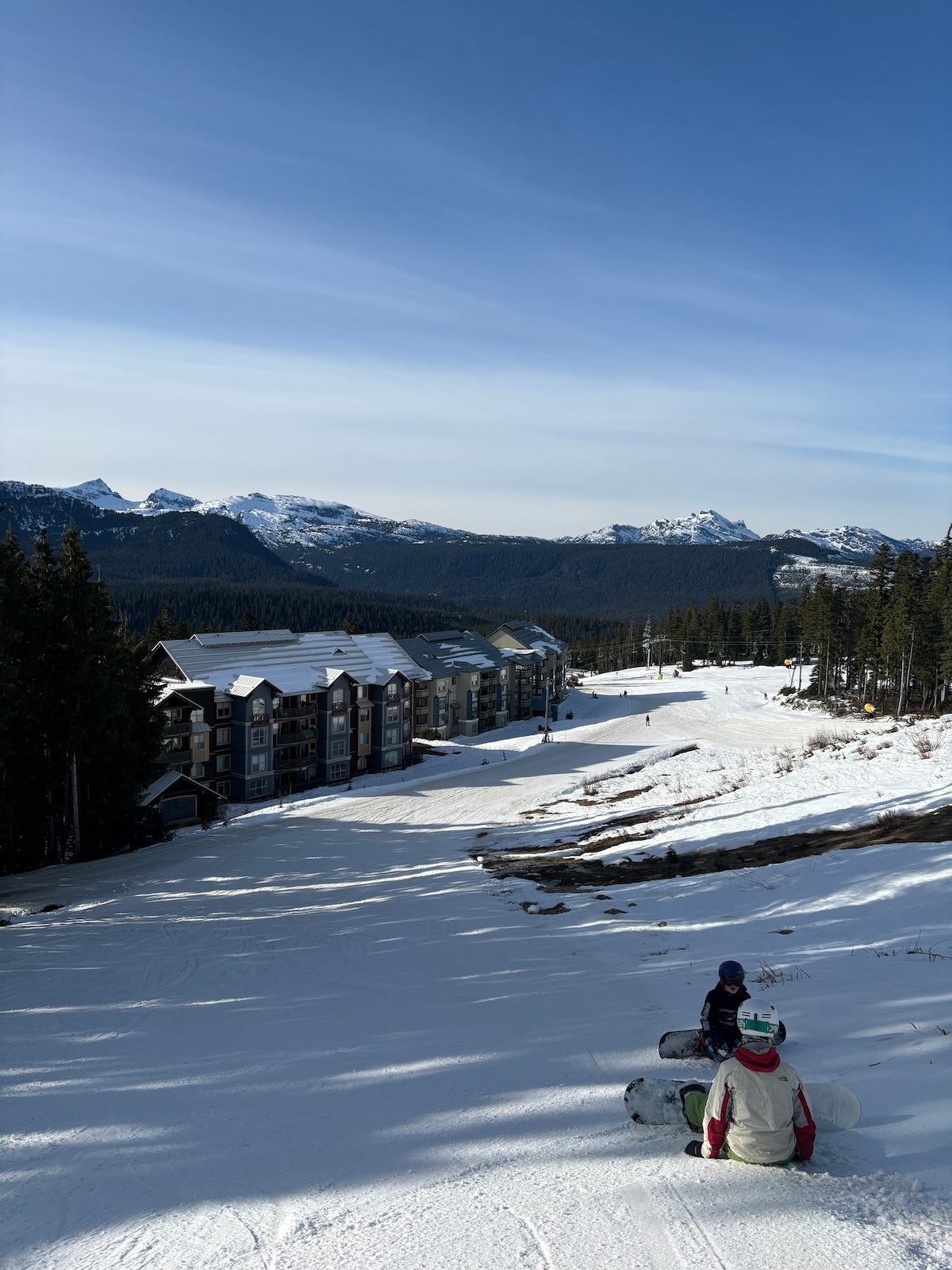 Welcome to Slopeside Suite! Our family’s 2 bed, 2 bath ski in/ski out condo in Deer Lodge right on the slopes of Mt Washington Alpine Resort. Updated, modern and bright 3rd floor south-facing unit. Full kitchen with new appliances, comfortable living room with cozy gas fireplace and private balcony overlooking the stunning Strathcona mountains. Two queen bedrooms each with full ensuite. In-suite washer/dryer, shared hot tub in main lobby, secure gear lockers and an underground parking space.