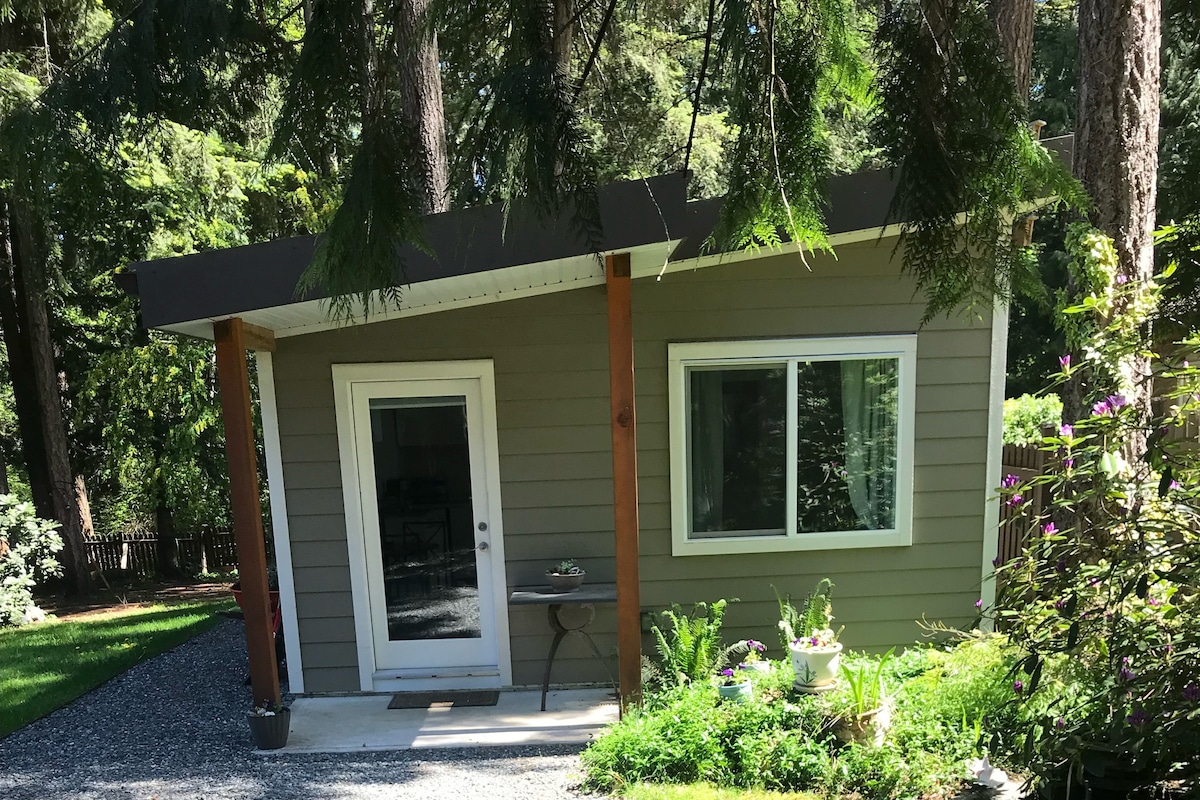 *Newly renovated and quiet suite in a separate building from our house. 5 min drive to Comox airport and Powell River ferry, 25-30 min drive to Mount Washington Resort* Nestled in a beautiful and private forest setting, yet only 7 minutes from downtown Comox, our carriage suite offers a peaceful and comfortable getaway in the trees. Yoga studio on the property with weekly classes! *Please let us know when you book if you are bringing pets, or more than 1 vehicle*