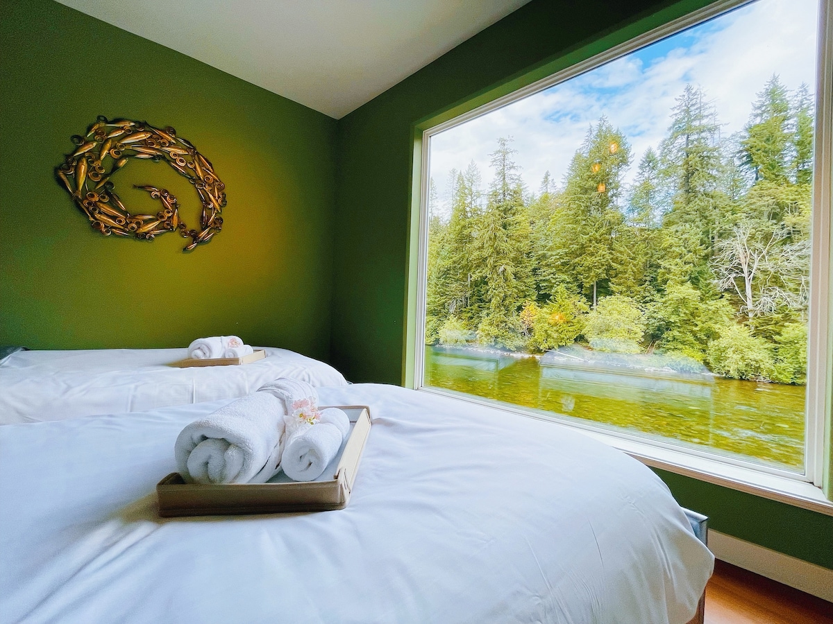 You'll have the entire lower floor of our split level house to yourself - a full suite complete with two bedrooms, a bathroom, a full kitchen, dining area, spacious living room and outdoor patio area. We've got everything you need to have a peaceful and relaxing stay with us. So much within walking distance. 300 meters to the Puntledge River's wooded trails, swimming holes and tubing. Less than 1 km to Courtenay’s bustling 5th Street with great shops, cafes, ice cream and groceries.