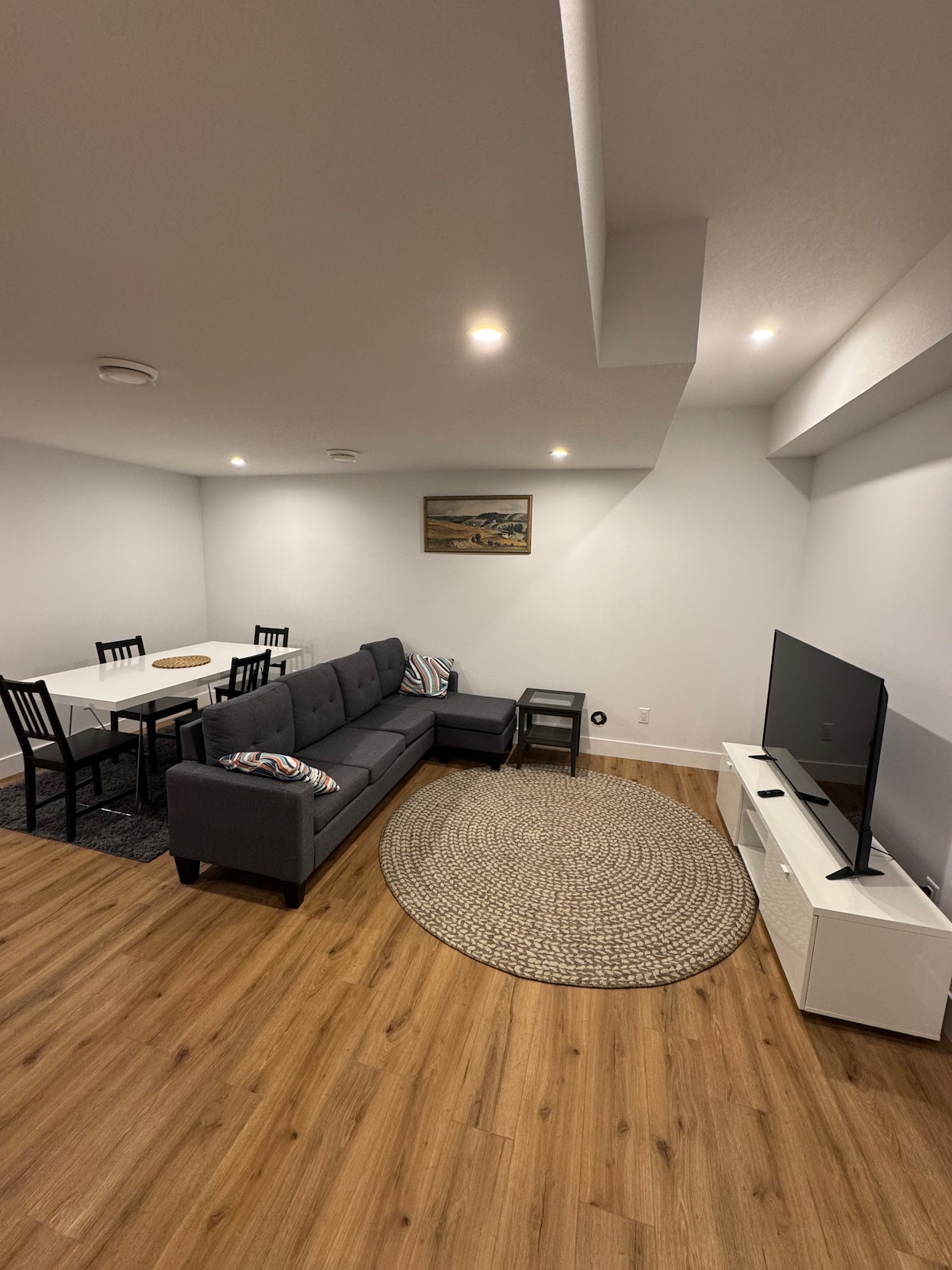 Welcome to our cozy one-bedroom basement suite (with a private entrance) in the peaceful Tamarack neighborhood. Close to local shops, gyms, and cinemas. The suite features a fully equipped kitchen, and in-suite laundry. Relax in the comfortable living area with complimentary Netflix and free Wi-Fi to stay connected and entertained. Professionally cleaned and well-maintained. The location is ideal for easy access to the Anthony Henday highway, and a 20-min drive to WEM.