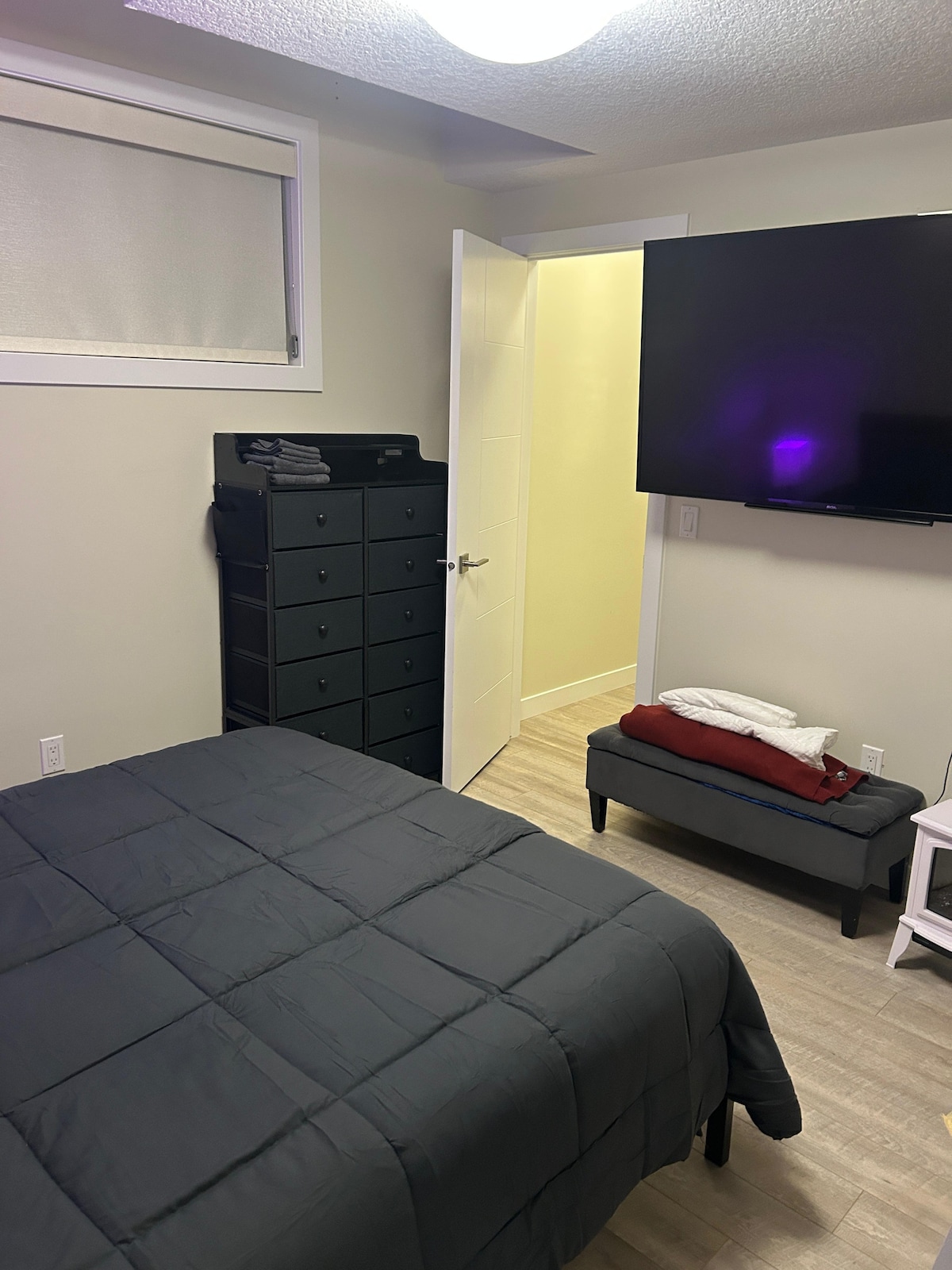 Enjoy your stay in this pristine , spacious cozy basement suite located in one of Fort Saskatchewan’s newer developments. Close to grocery stores, community recreation center, walking paths and easy access to the highway. The suite offers all the amenities of home! All required cookware for meal prepping, an amazingly comfortable queen size bed, including black out blinds. Parking pad is available in the back beside the garage on or ample street parking out front.