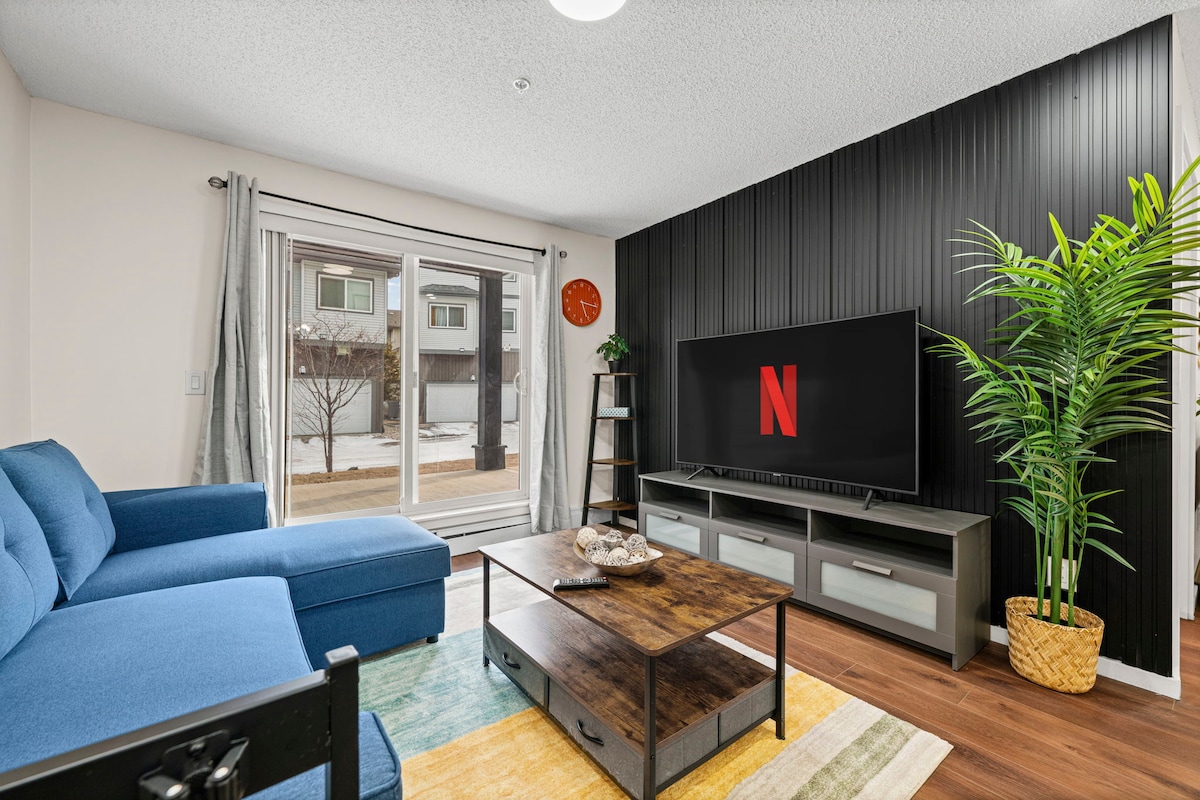 Spacious 2-bedroom, 2-bath ground-floor apartment near 34 Street with quick access to Anthony Henday right behind the property. Enjoy a smooth self check-in, 2 dedicated parking spots, fast WiFi, and a clean, modern space ideal for families, professionals, or short stays. Grocery stores, restaurants, transit, and everyday essentials are just minutes away, making your stay comfortable, convenient, and hassle-free from start to finish.